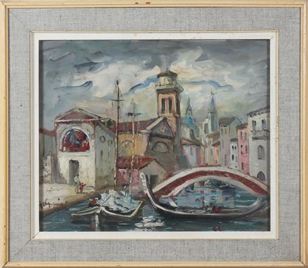 OPPICI ALDO (1908 - 1985) Venezia. Olio su masonite. Cm 62,00 x 50,00. Firma...