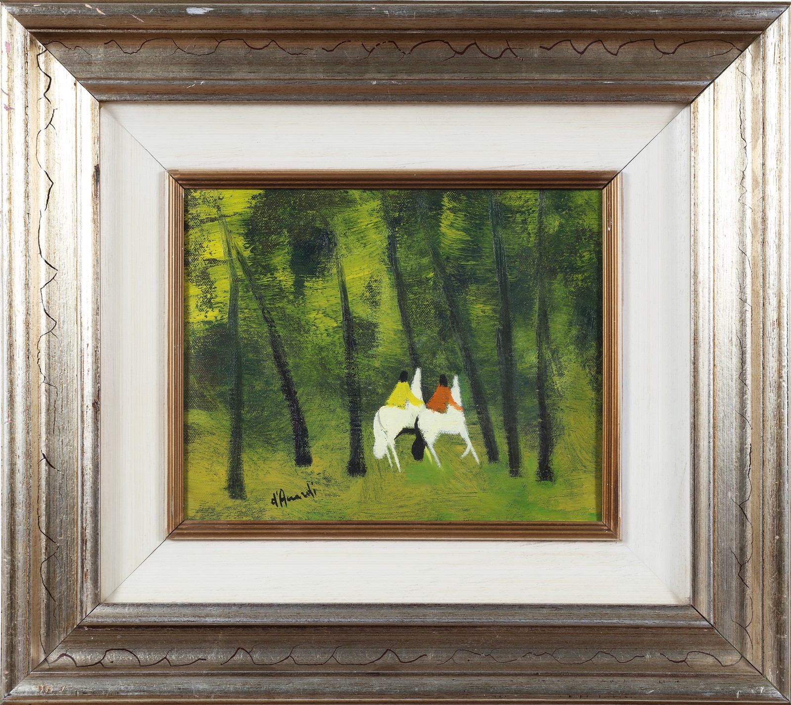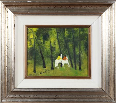 D'ACCARDI GIANRODOLFO (1906 - 1993) Figure nel bosco. Olio su tela. Cm 30,00 x 24,00. Firma in basso a sinistra. Firma al retro per autentica. Cornice presente