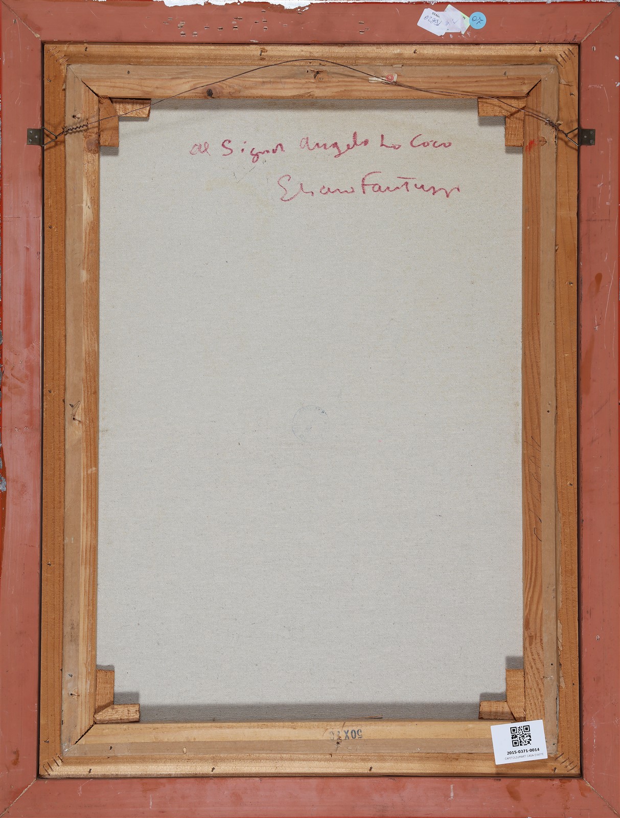 FANTUZZI ELIANO (1909 - 1987) Figure. Olio su tela. Cm 50,00 x 70,00. Firma in basso a sinistra. Al retro dedica con firma dell'artista. Cornice presente