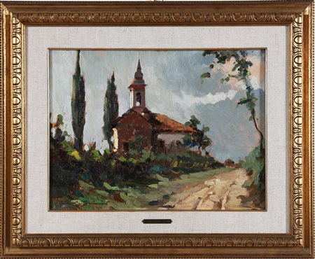 CASTELFRANCHI CIRANO (n. 1912) Controluce a San Michele Piemonte. 1941. Olio...