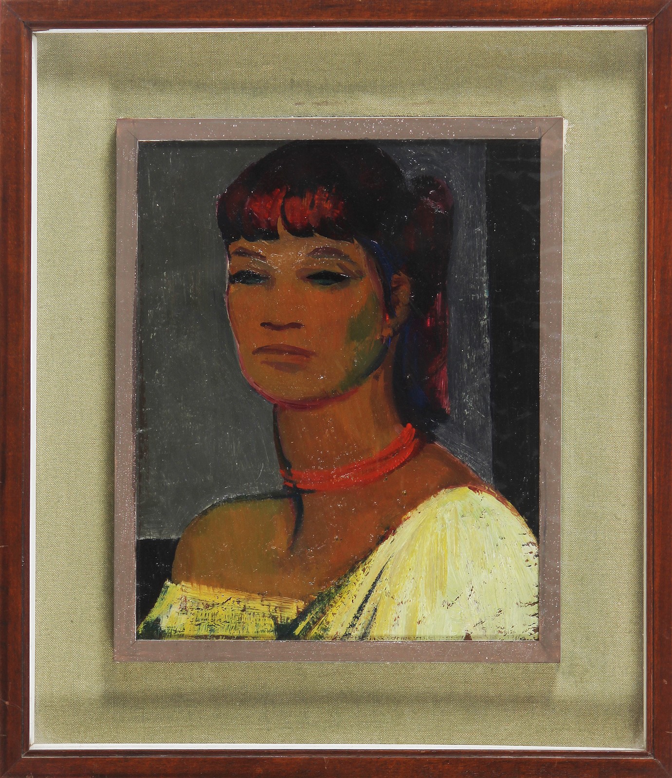 MUSITELLI GIULIO VITO (1901 - 1990) Busto di donna. 1956. Olio su tavola. Cm 20,50 x 25,00. Al retro firma, anno e dedica. Cornice presente