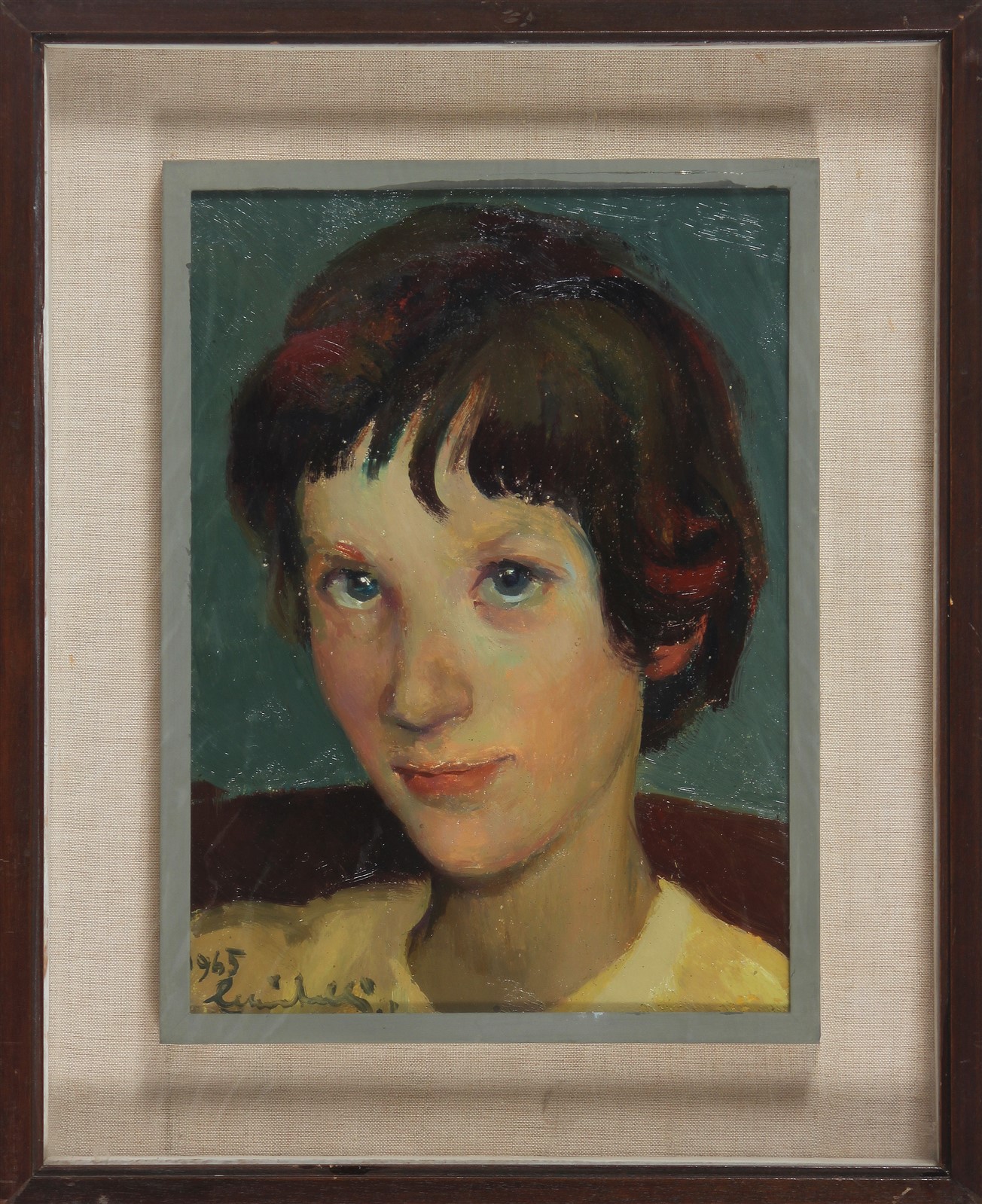 MUSITELLI GIULIO VITO (1901 - 1990) Volto di fanciulla. 1965. Olio su tavola. Cm 25,00 x 28,00. Firma e titolo in basso a sinistra. Cornice presente