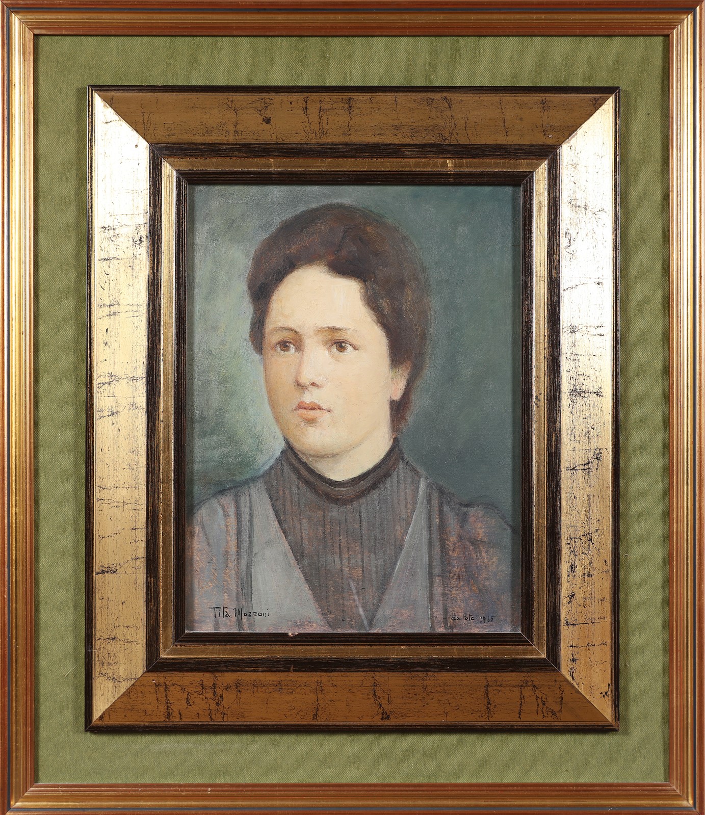 MOZZONI TITA (1894 - 1986) Ritratto di donna. 1955. Olio su tela. Cm 30,00 x 40,00. Firma e anno in basso. Cornice presente