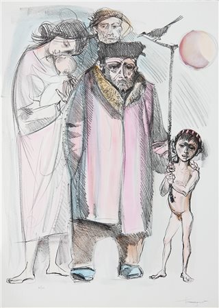 LONGARETTI TRENTO (n. 1916) Senza titolo. Litografia acquerellata. Cm 50,00 x...