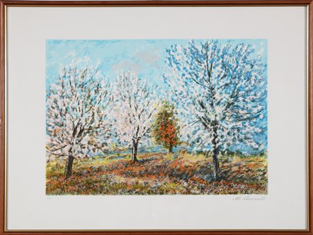 CASCELLA MICHELE (1892 - 1989) Paesaggio. Litografia. Cm 60,00 x 44,00. P.d.a. Tiratura e firma in matita in basso. Timbro a secco Michele Cascella in basso a destra. Cornice presente