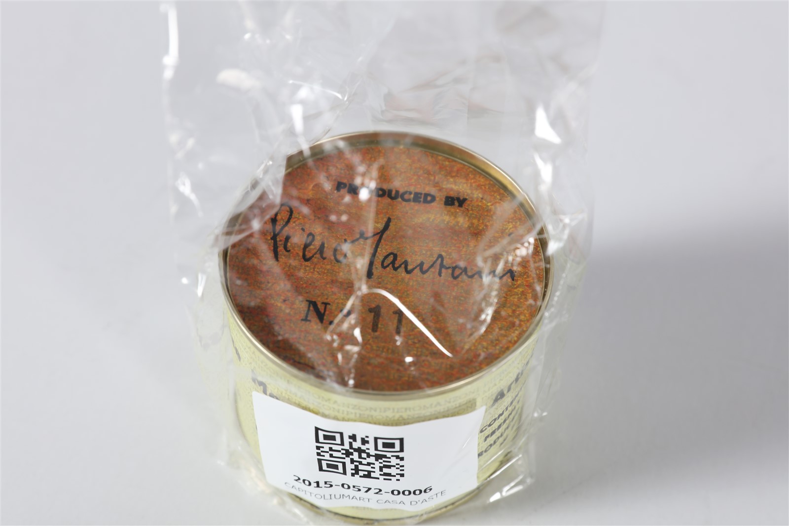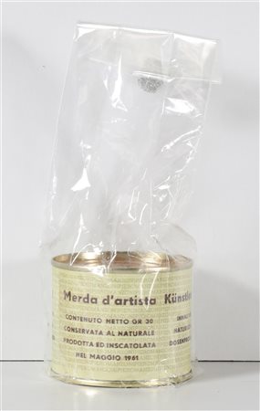 MANZONI PIERO (1963 - 2013) Merda d'artista. Multiplo. Cm 7,50 x 6,50. Edizione n. 11. Prodotta e inscatolata dalla Fondazione Piero Manzoni nel maggio 2013. Opera accompagnata dal Volume Breve Storia della Merda d'Artista a cura di Flaminio Gualdoni, Skira Edizioni.