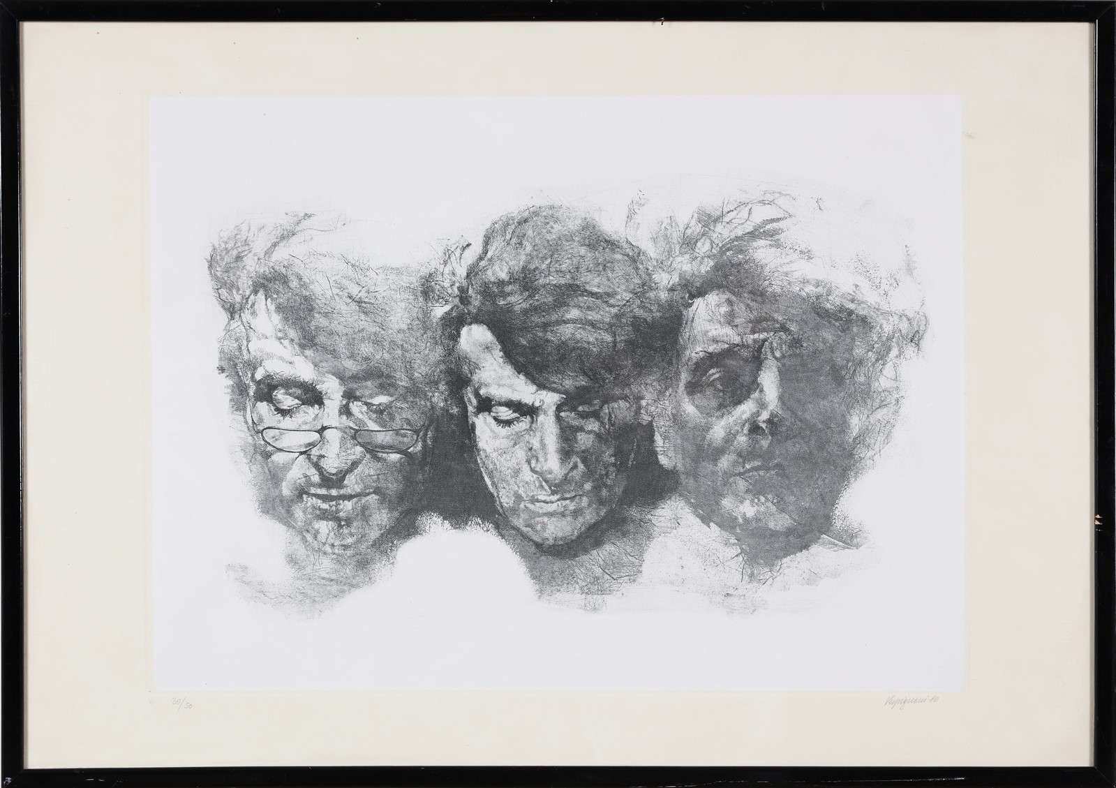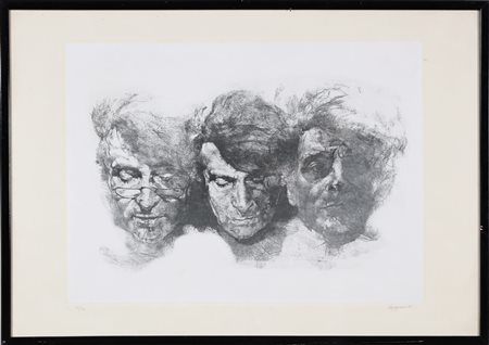 VESPIGNANI RENZO (1924 - 2001) Tre autoritratti. 1980. Acquaforte. Cm 70,00 x 50,00. 30/50. Tiratura, firma e anno a matita in basso. Pubblicazione: Catalogo may n. 291. Cornice presente
