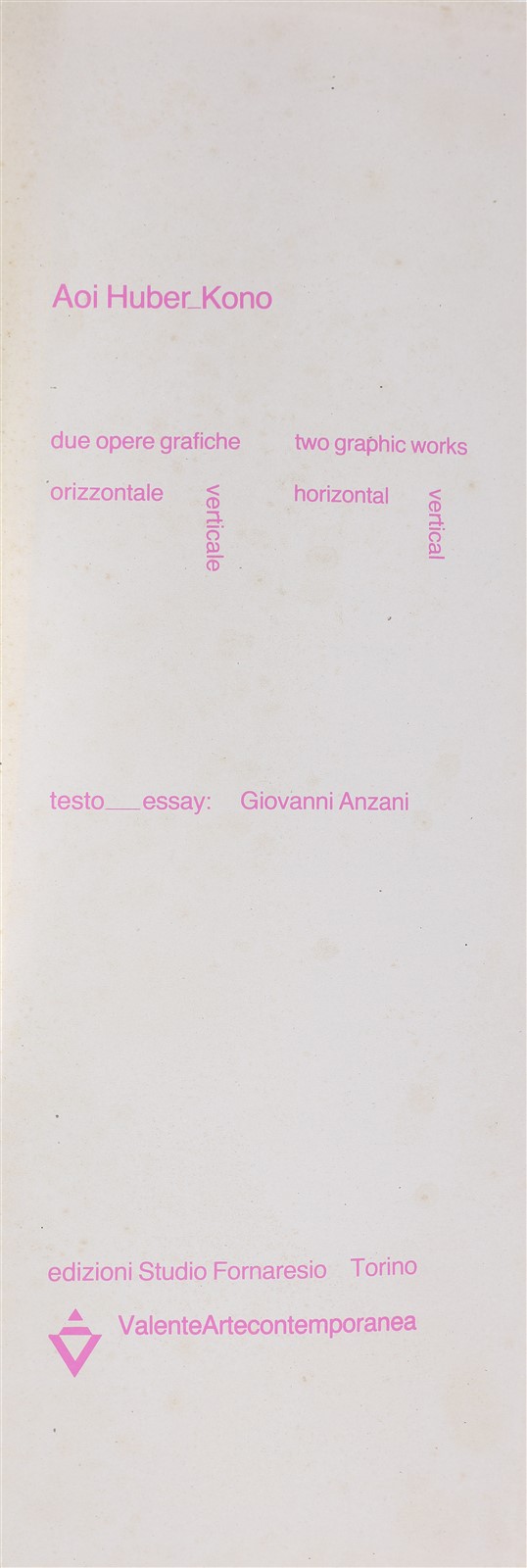 HUBER-KONO KONO (n. 1936) Orizzontale - Verticale. 1989. Serigrafia. Cm 35,00 x 100,00. Cartella completa contenente n.2 serigrafie firmate e numerate dall'autore a matita. Tiratura: 100 + XXX. Edizioni Valente Arte Contemporanea, Studio Fornaresio, con testi di Giovanni Anzani.Confezione originale numerata. Esemplare: II