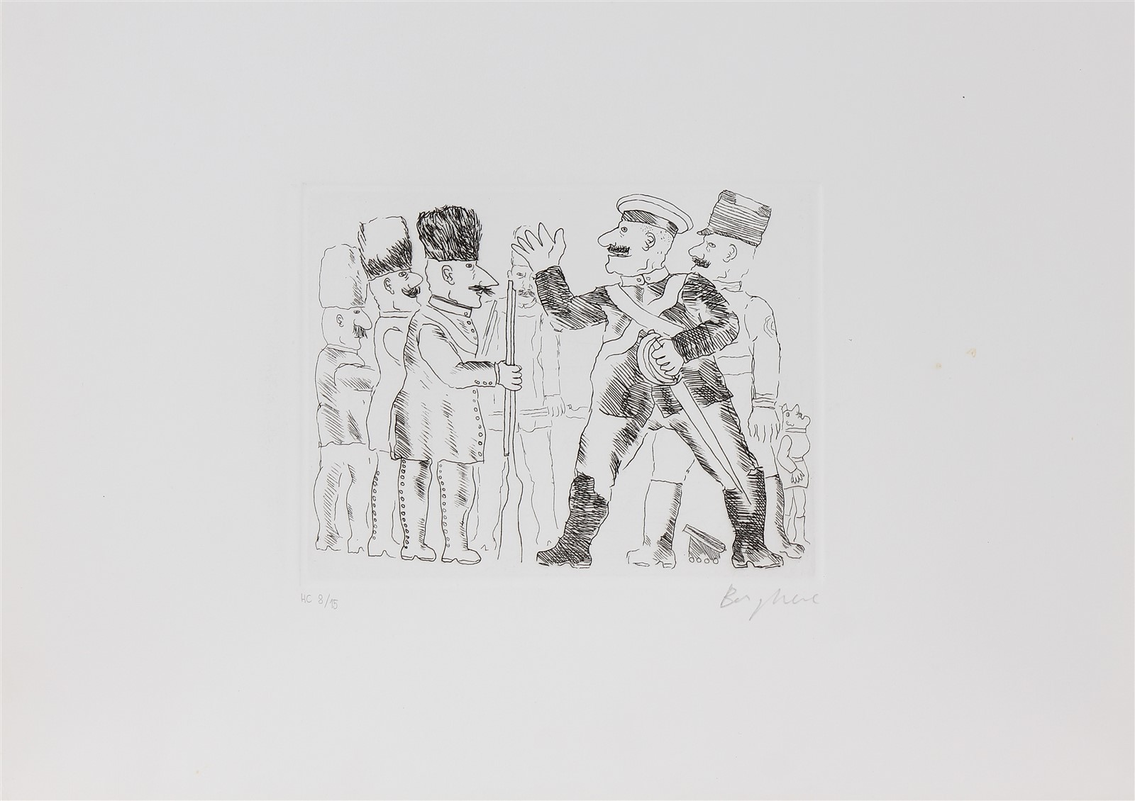 BORGHESE FRANZ (1941 - 2005) Lotto composto da n. 4 grafiche. Viva la guerra. Acquaforte. Cm 36,00 x 25,00. 8/15. Tutte le grafiche presentano la stessa tiratura e firma a matita in basso.