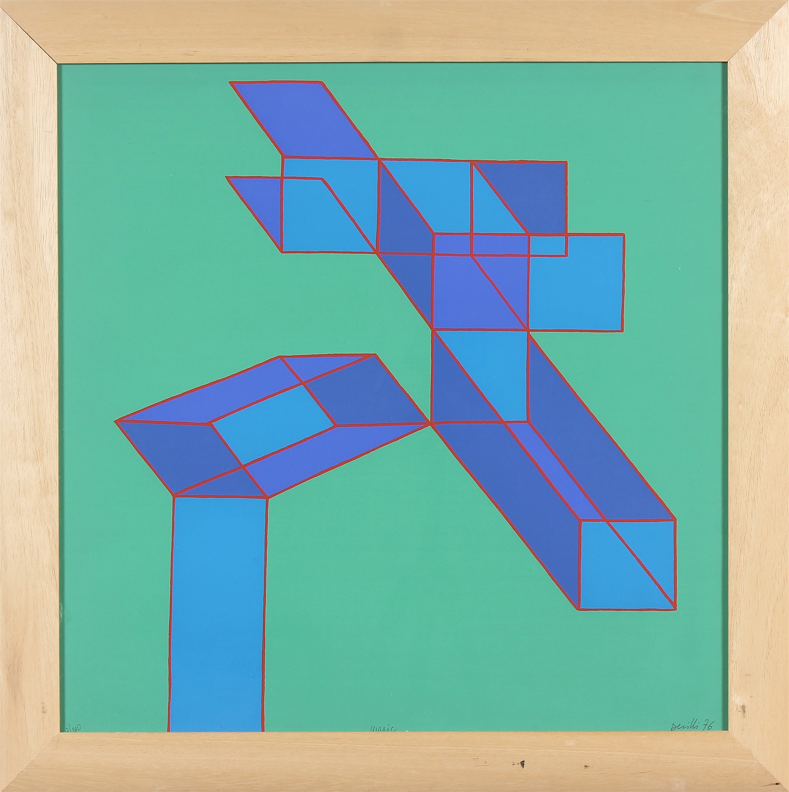 PERILLI ACHILLE (n. 1927) Senza titolo. 1976. Litografia. Cm 57,00 x 57,00. 3/100. Tiratura, firma e data a matita in basso. Autentica su fotografia a cura della Galleria Rotta Farinelli, Genova. Cornice presente