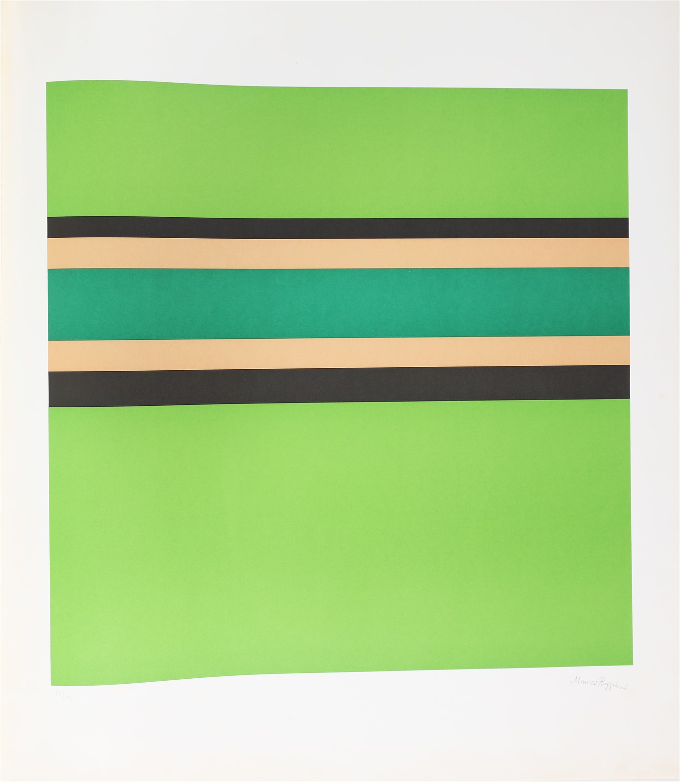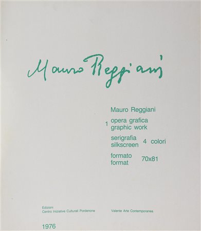 REGGIANI MAURO (1897 - 1980) Mauro Reggiani (cartella). 1976. Serigrafia. Cm 70,00 x 81,00. Cartella completa contente n.1 serigrafia a 4 colori numerata e firmata dall'autore a matita. Edizioni Centro Iniziative Culturali Pordenone, Valente Arte Contemporanea. Esemplare: 89/125