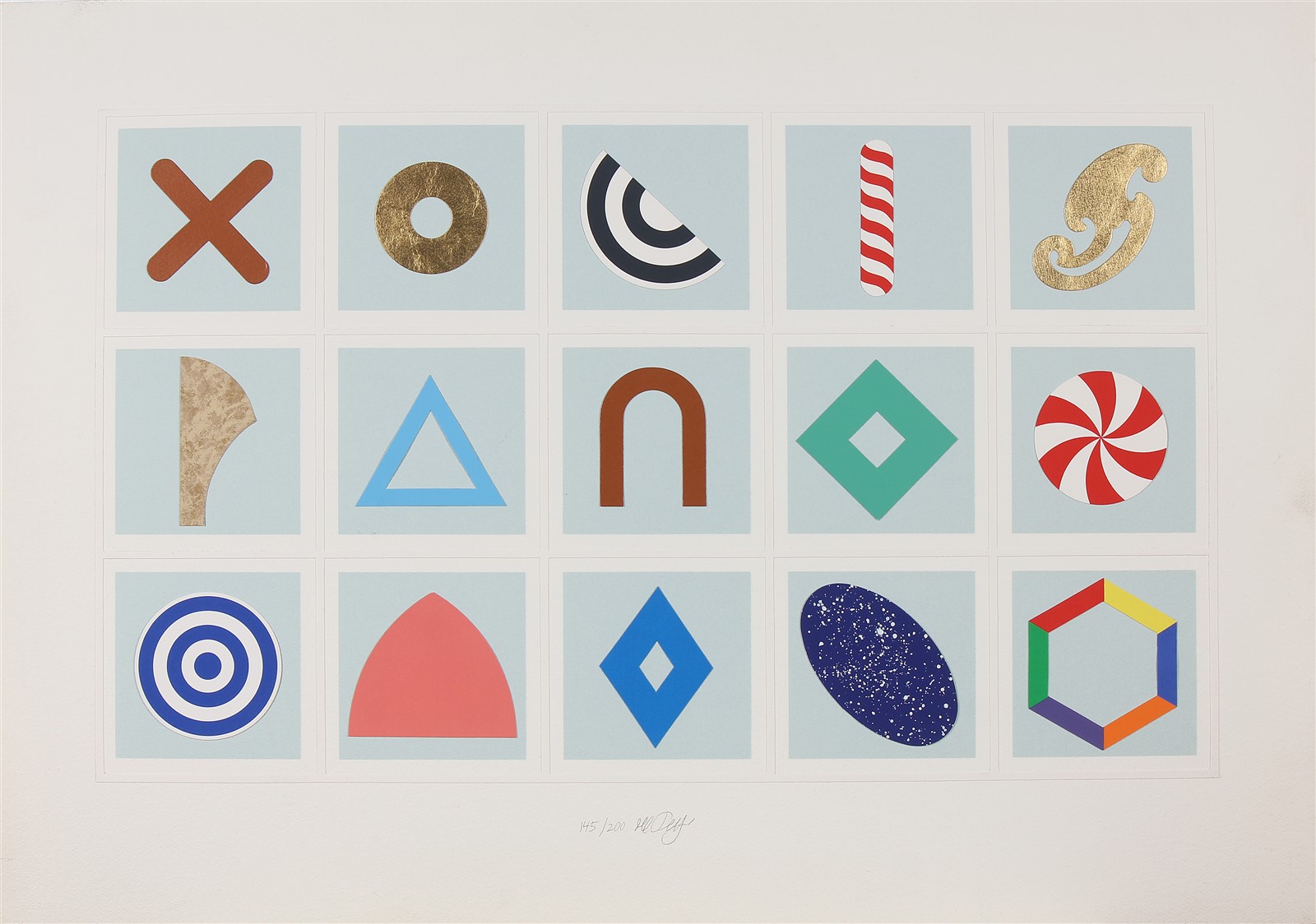DEL PEZZO LUCIO (n. 1933) Lotto composto da n.2 grafiche. Simboli e segni della vita. Spettacolo cosmico. 1999. Collage su cartoncino. Cm 100,00 x 70,00. Grafica n.1: 145/200. Tiratura e firma a matita in basso. Grafica n.2: VI/XX. Tiratura e firma in basso. Presente per entrambe le grafiche dichiarazione di autenticità a cura della Grafica d'Arte Lombardi, Roma.