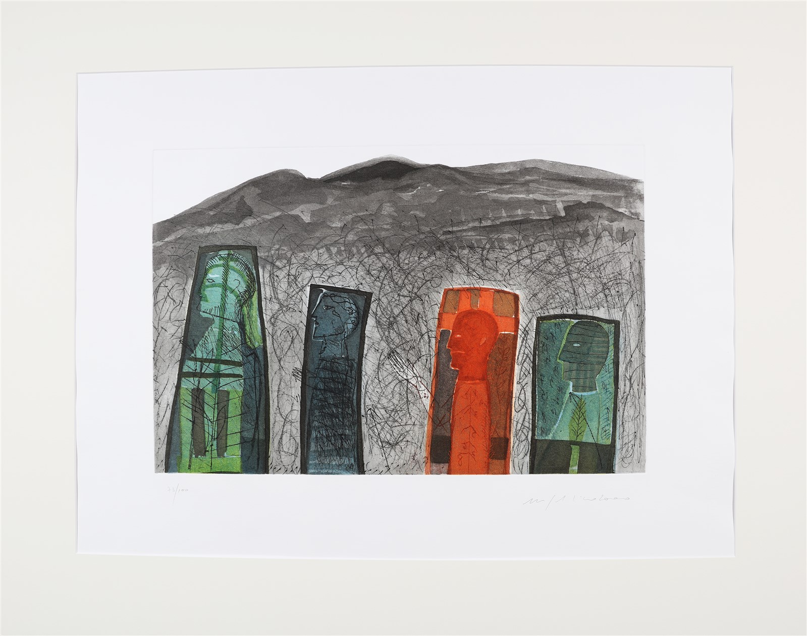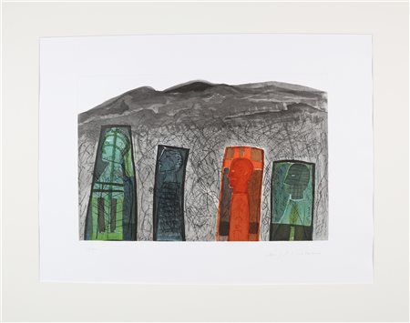 PALADINO MIMMO (n. 1948) Sguardo a destra. Acquaforte. Cm 80,00 x 60,00. 73/100. Tiratura e firma a matita in basso.