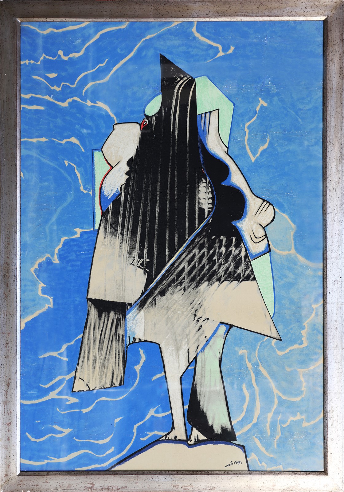 ANONIMO Astratto. Serigrafia su tela. Cm 100,00 x 145,00. Firmato in basso al centro. Cornice presente