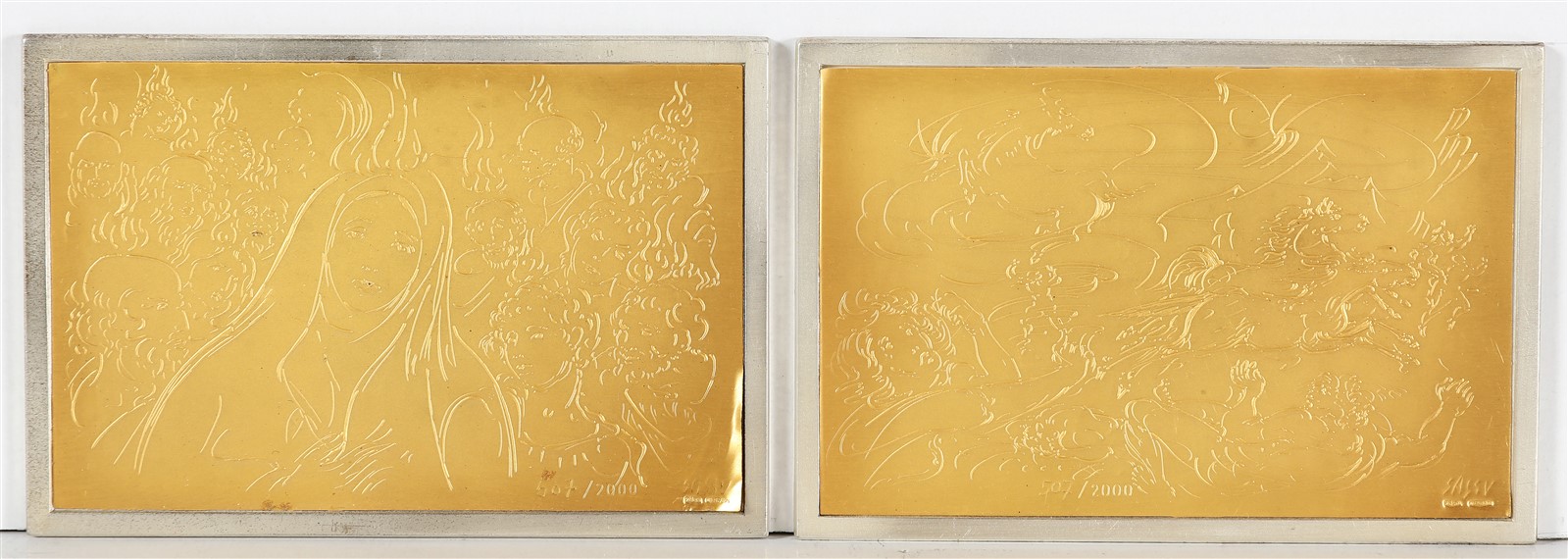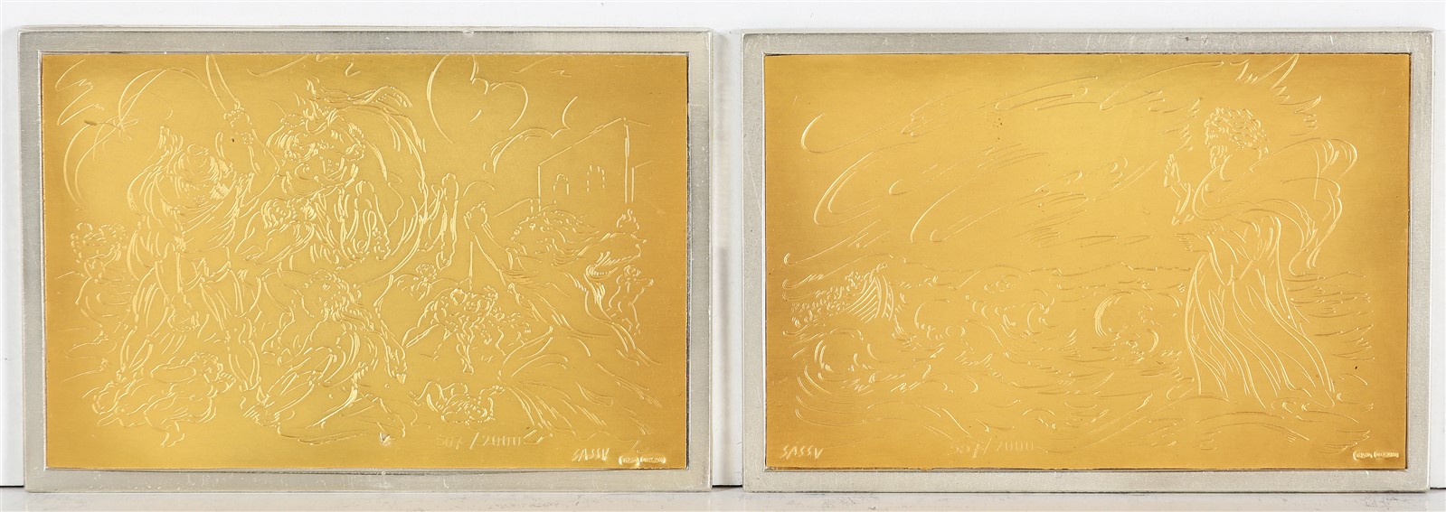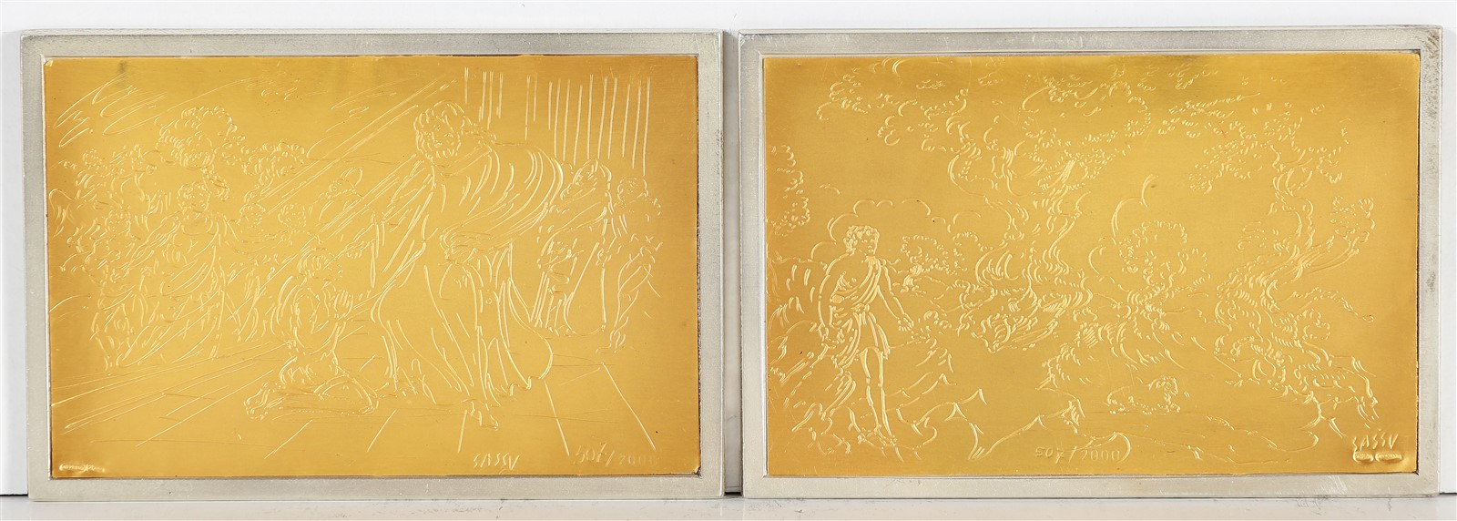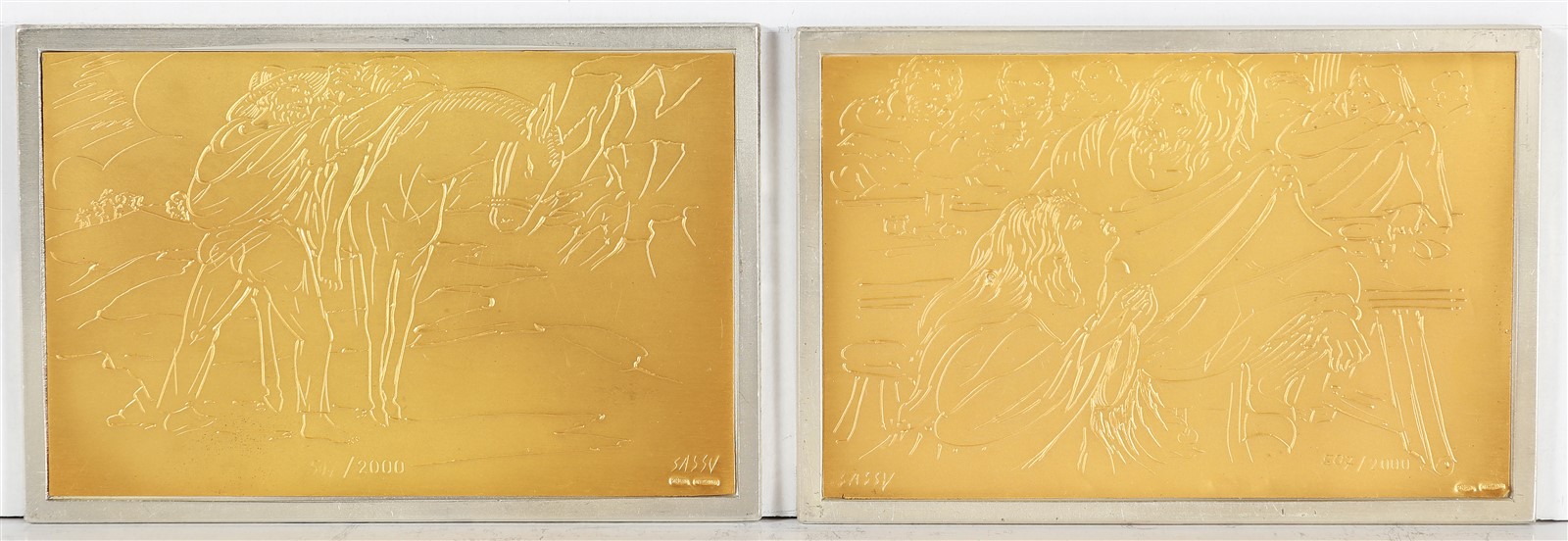 SASSU ALIGI (1912 - 2000) Lotto composto da n.12 placche d'argento con scene bibliche. Argento. . La parte incisa è su foglia d'oro.