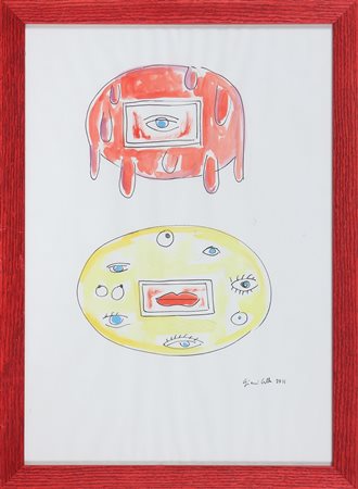 CELLA GIANNI (n. 1953) Senza titolo. 2011. Tecnica mista su carta. Cm 29,00 x 41,00. Firma e data in basso a destra. Autentica dell'artista su fotografia.
