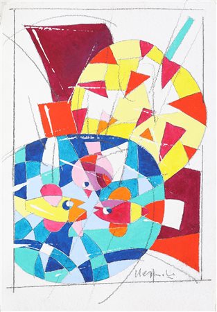 NESPOLO UGO (n. 1941) Senza titolo. Tecnica mista su cartoncino. Cm 31,50 x 44,00. Firma in basso a destra. Autentica dell'artista su fotografia.