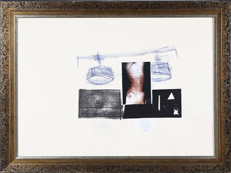 PAGLIACCI MIRKO (n. 1959) Senza Titolo. Tecnica mista e collage su carta. Cm 70,00 x 50,00. Certificato di autenticità e provenienza a cura di Telemarket, Roncadelle (BS). Cornice presente