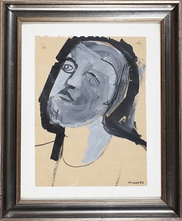 MILANI UMBERTO (1912 - 1969) Volto di donna. 1952. Tecnica mista su carta. Cm 37,00 x 50,00. Firma e anno in basso a destra. Cornice presente