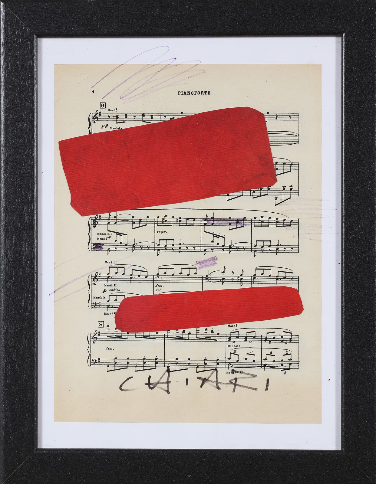 CHIARI GIUSEPPE (1926 - 2007) Spartito. Tecnica mista e collage su carta. Cm 30,00 x 40,00. Firma in basso. Autentica dell'artista su fotografia. Cornice presente