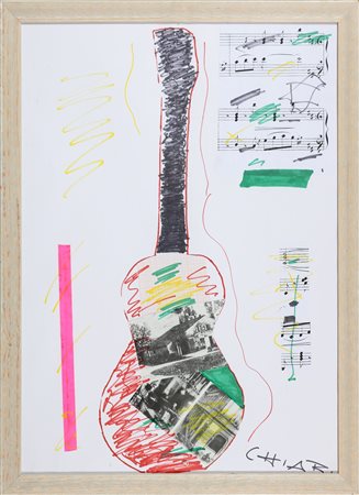 CHIARI GIUSEPPE (1926 - 2007) Chitarra. Tecnica mista e collage su carta. Cm 50,00 x 70,00. Firma in basso a destra. Autentica dell'artista su fotografia. Cornice presente