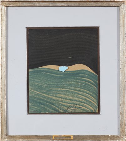 DANGELO SERGIO (n. 1932) Left Aloye. Olio su cartone. Cm 21,00 x 25,00. Firma e titolo in basso e al retro. Cornice presente
