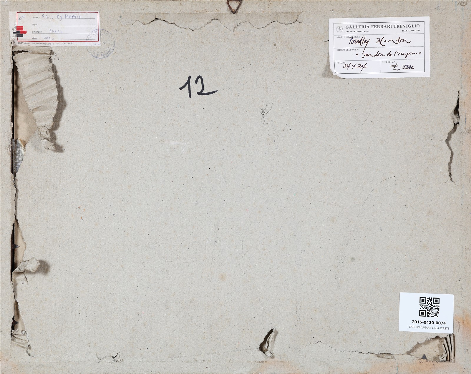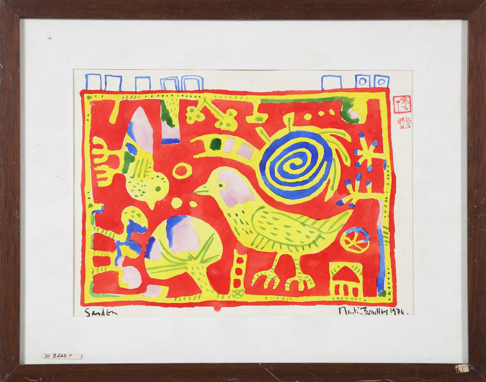 BRADLEY MARTIN (n. 1931) Senza titolo. 1974. Tecnica mista su carta. Cm 34,00 x 24,00. Firma e anno in basso a destra. Al retro cartiglio descrittivo a cura della Galleria Ferrari, Treviglio.