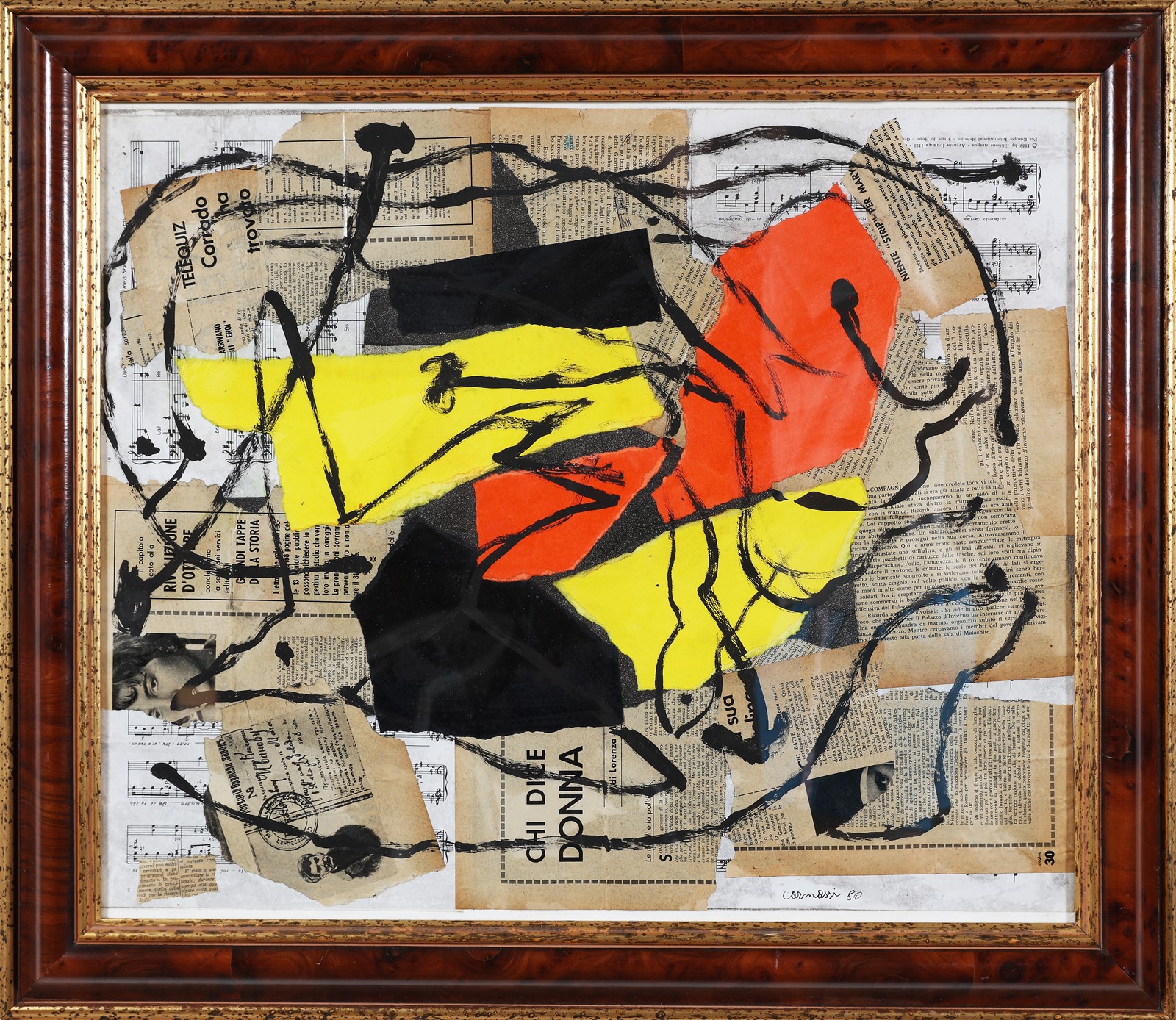 CARMASSI ARTURO (n. 1925) Senza titolo. 1980. Tecnica mista e collage su carta. Cm 60,00 x 51,00. Firma e anno in basso a destra. Autentica dell'artista su fotografia. Cornice presente