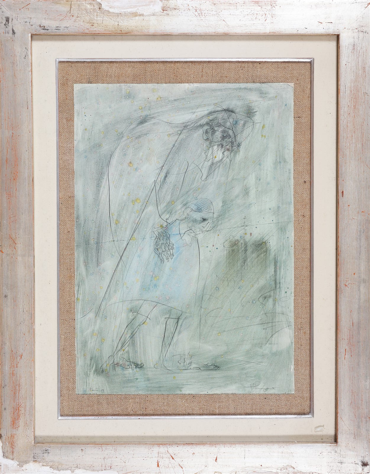 LONGARETTI TRENTO (n. 1916) Senza titolo. 1979. Tecnica mista su carta. Cm 32,00 x 46,00. Firma e anno in basso a sinistra. Cornice presente