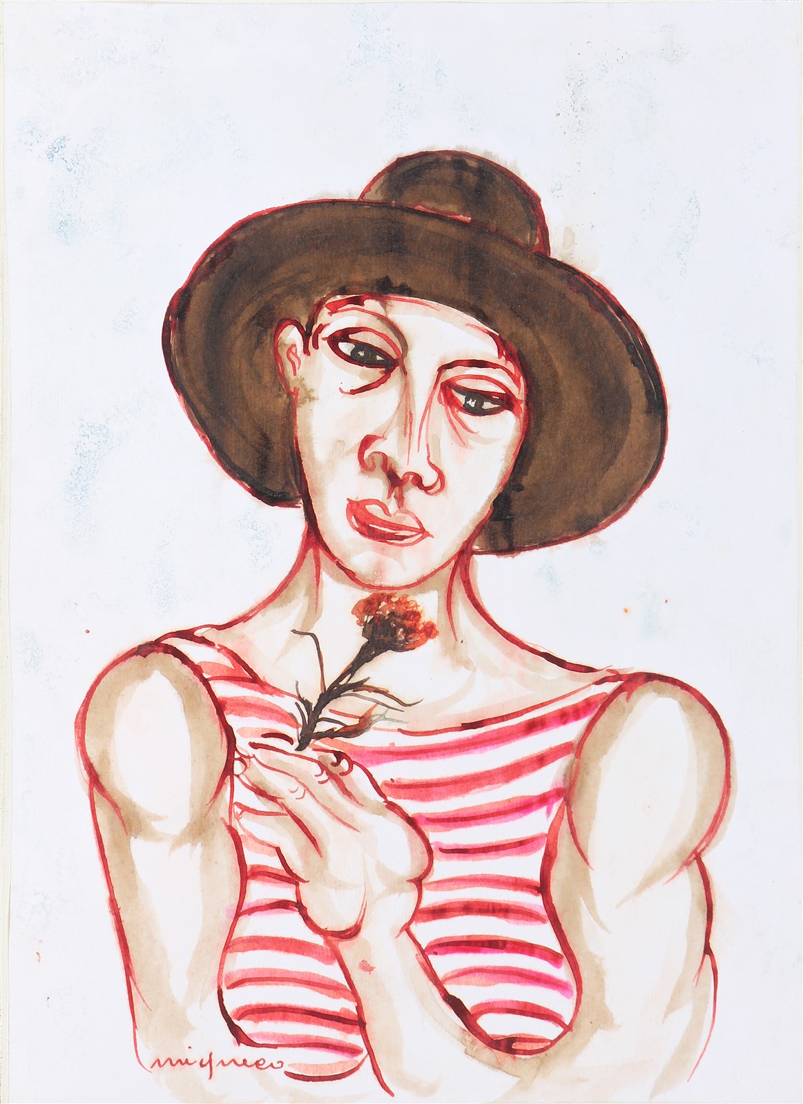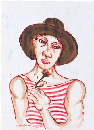 MIGNECO GIUSEPPE (1908 - 1997) Ritratto di ragazzo. Tecnica mista su carta su...