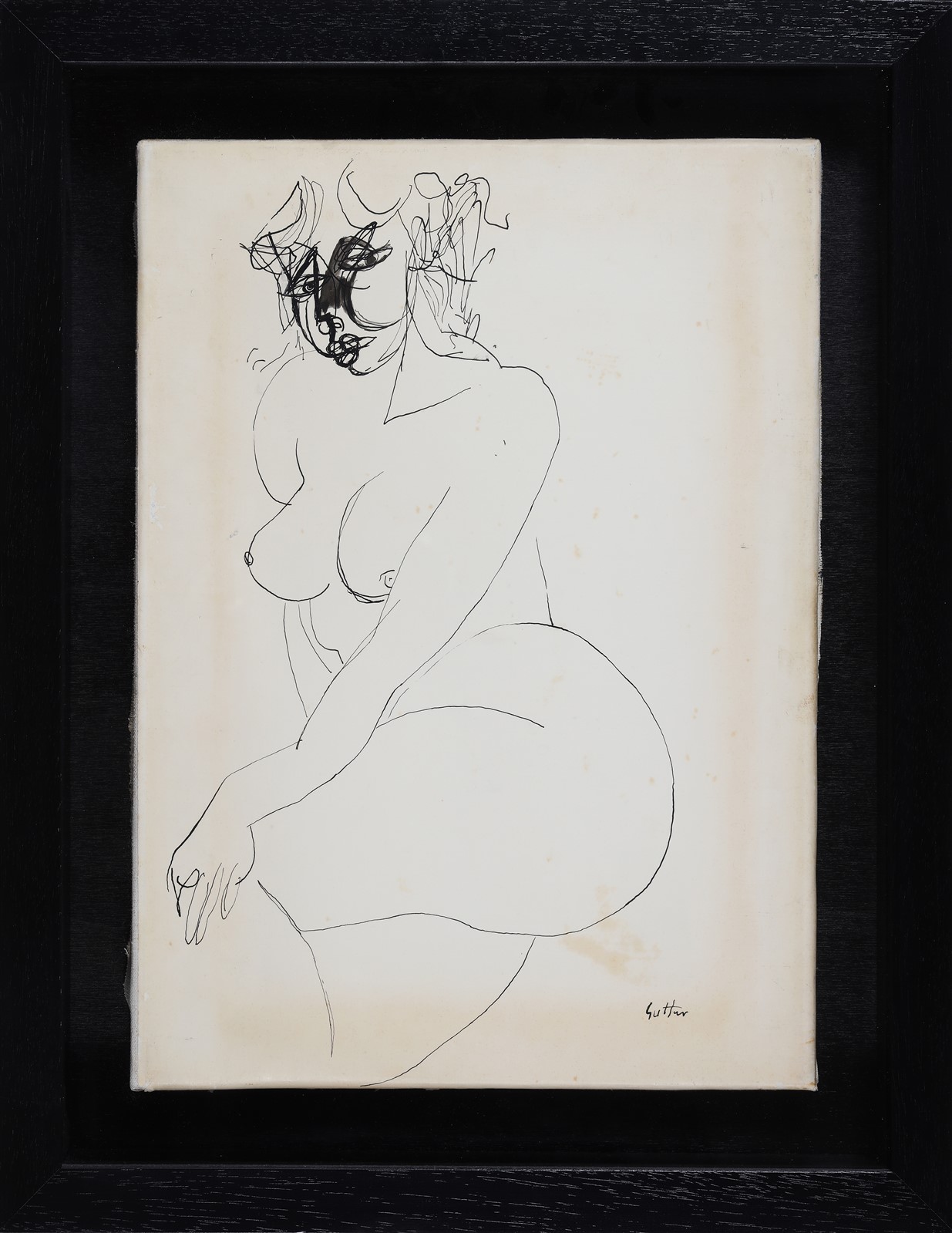 GUTTUSO RENATO (1912 - 1987) Nudo seduto. China su carta su tela. Cm 36,00 x...