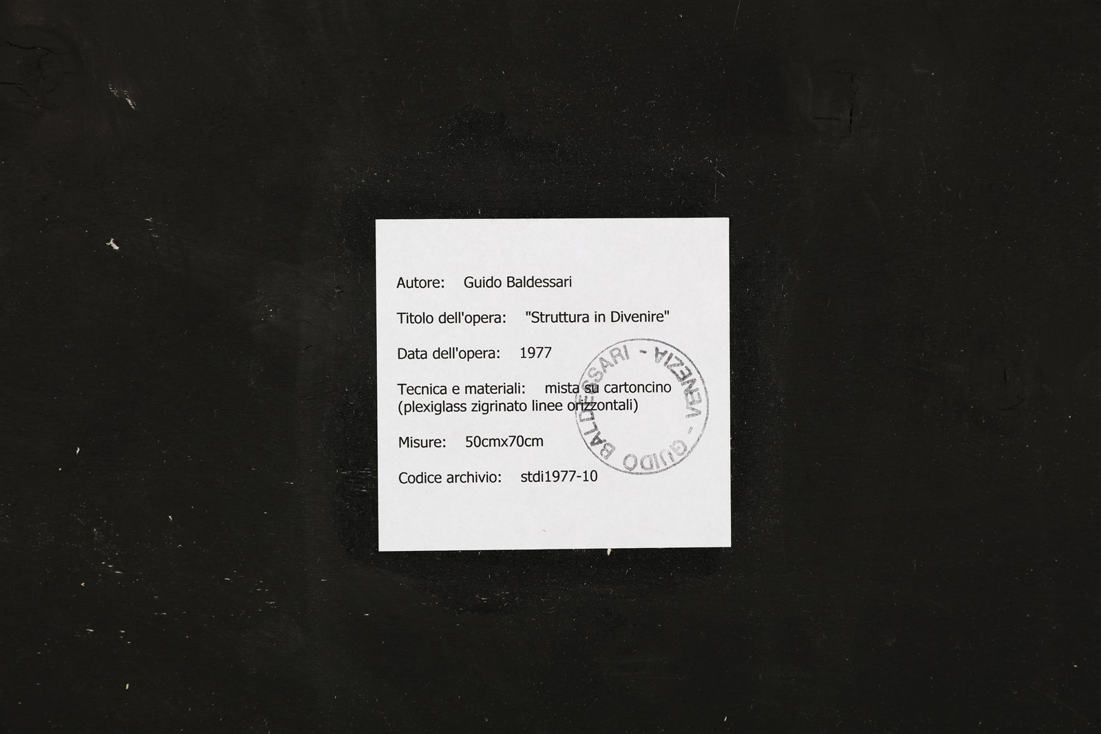 BALDESSARI GUIDO (n. 1938) Struttura in divenire. 1977. Tecnica mista su cartoncino. Cm 50,00 x 70,00. Certificato di autenticità firmato e timbrato dall'artista a cura di Anti: Galleria d'Arte Contemporanea, Mestre - Venezia.