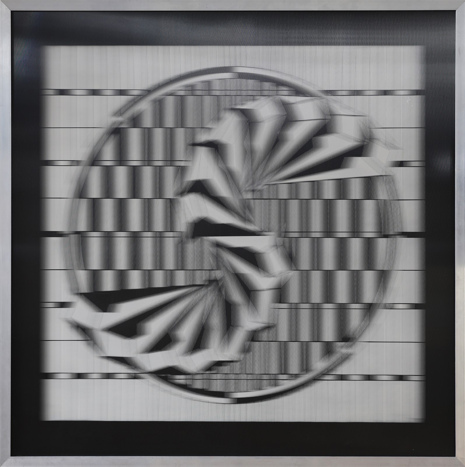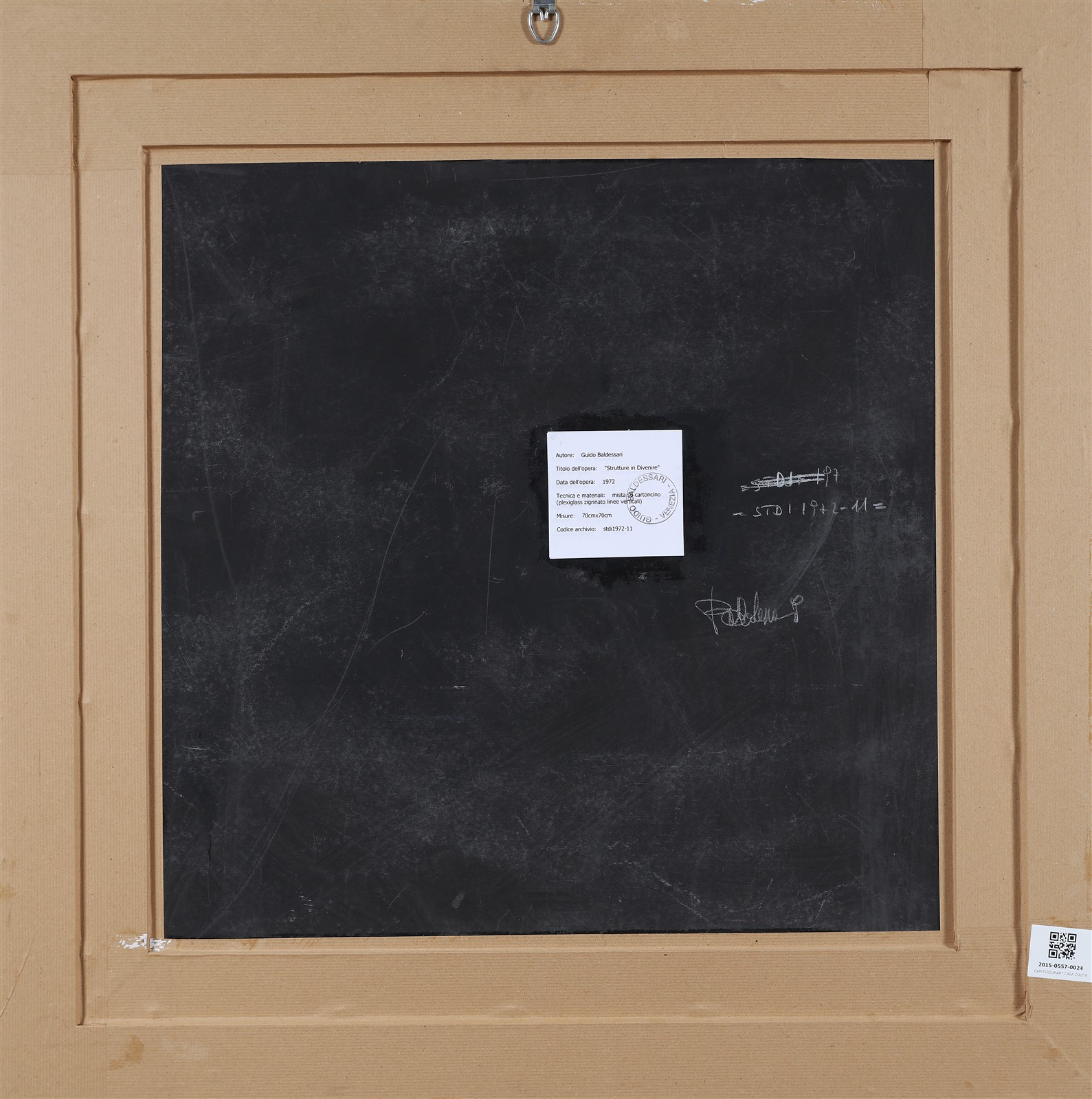 BALDESSARI GUIDO (n. 1938) Struttura in divenire. 1972. Tecnica mista su cartoncino. Cm 70,00 x 70,00. Al retro firma e cartiglio descrittivo con timbro a cura dell'artista. Cornice presente