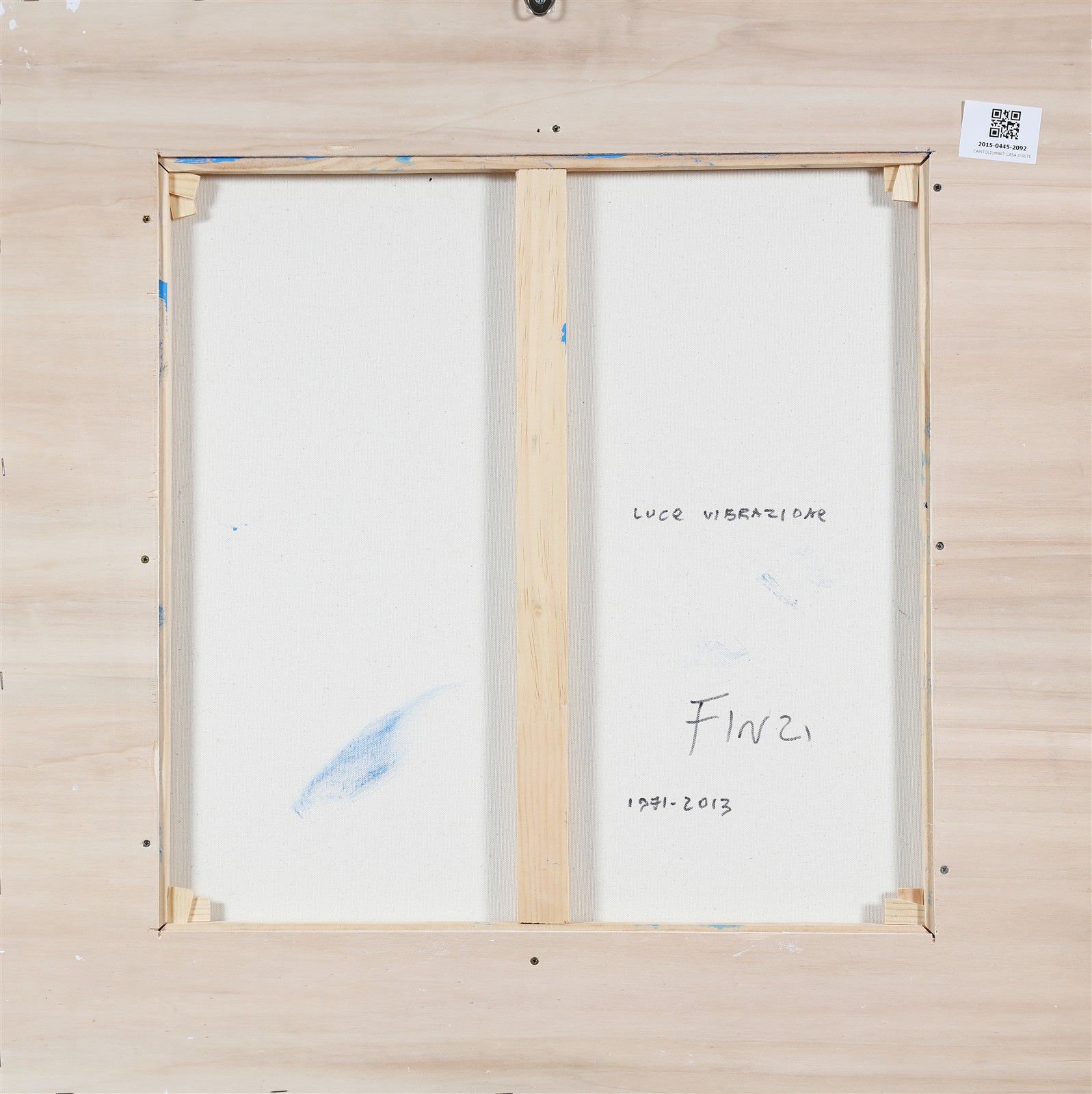 FINZI ENNIO (n. 1931) Luce vibrazione. Acrilico su tela. Cm 60,00 x 60,00. Al retro titolo, firma. Opera datata 1971 - 2013. Autentica dell'artista su fotografia. Cornice presente