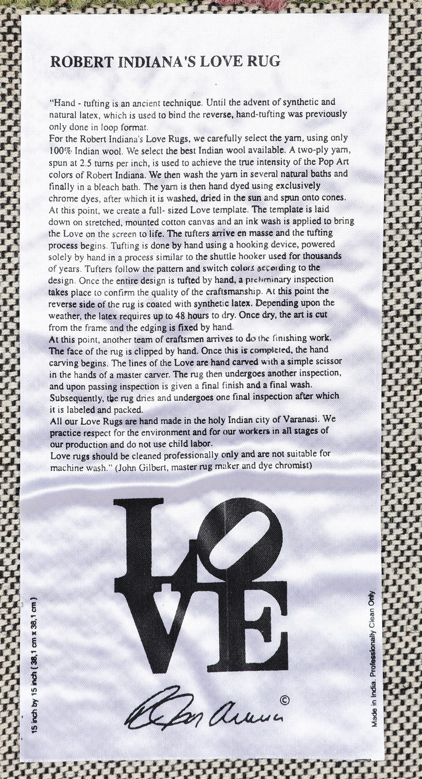 INDIANA ROBERT (n. 1928) Love rug. 2005. Tappeto. Cm 39,00 x 39,00. Al retro...