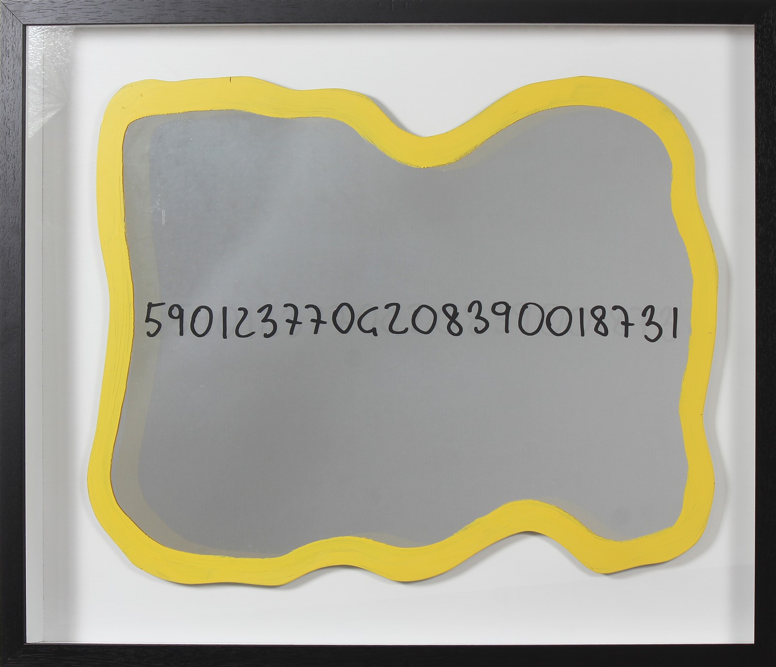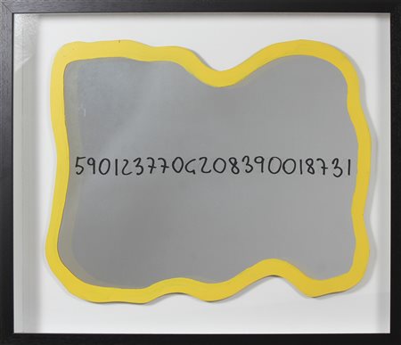 PISTOLETTO MICHELANGELO (n. 1933) Frattale giallo. Acrilico su specchio. Cm 78,00 x 57,00. 1999/2000. Al retro titolo, firma e tiratura. Autentica dell'artista su fotografia con timbro a cura dell' Associazione Culturale Arte Nova, Pescara. Cornice presente