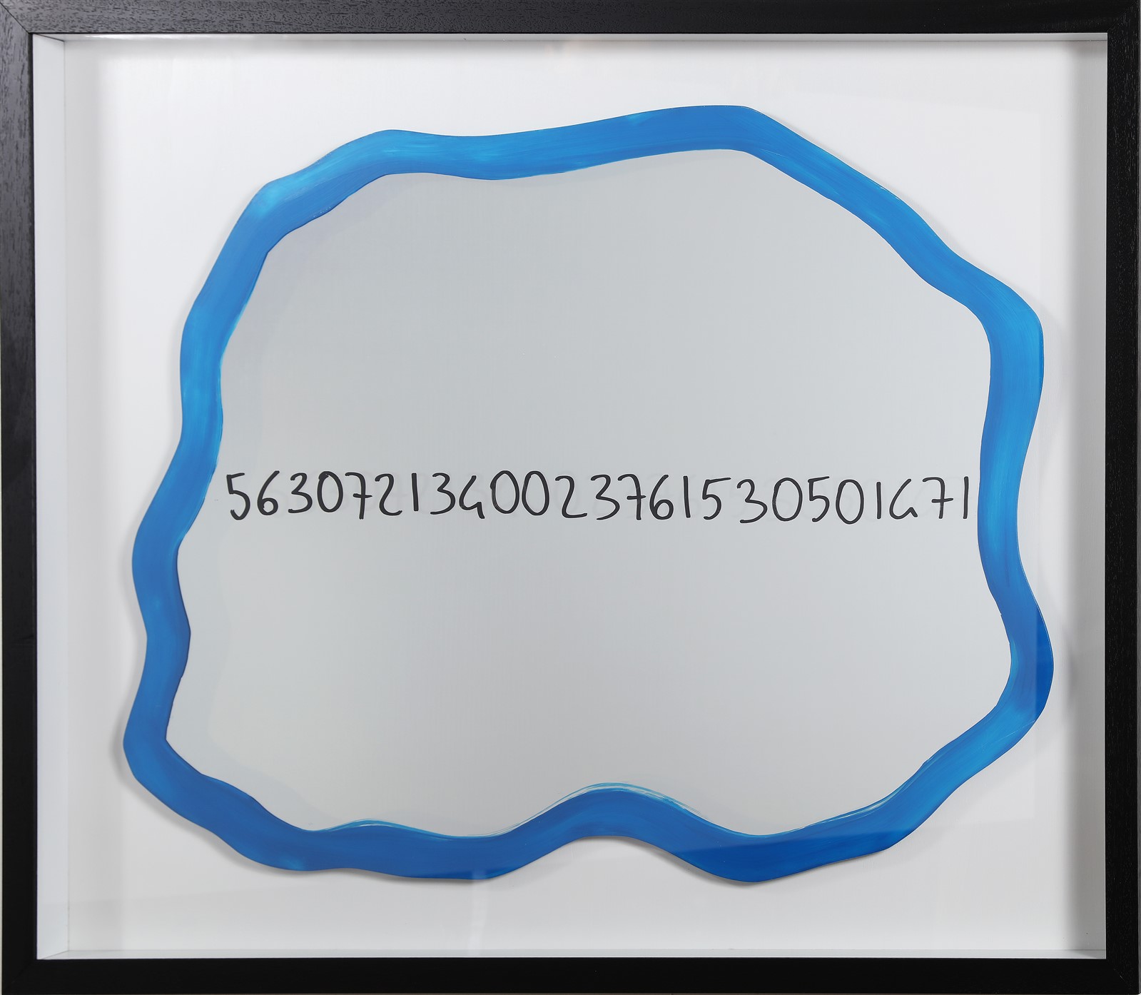 PISTOLETTO MICHELANGELO (n. 1933) Frattale blu. Acrilico su specchio. Cm 80,00 x 60,00. Firmato al retro. Autentica dell'artista su fotografia a cura della Associazione Culturale Arte Nova, Pescara. Cornice presente