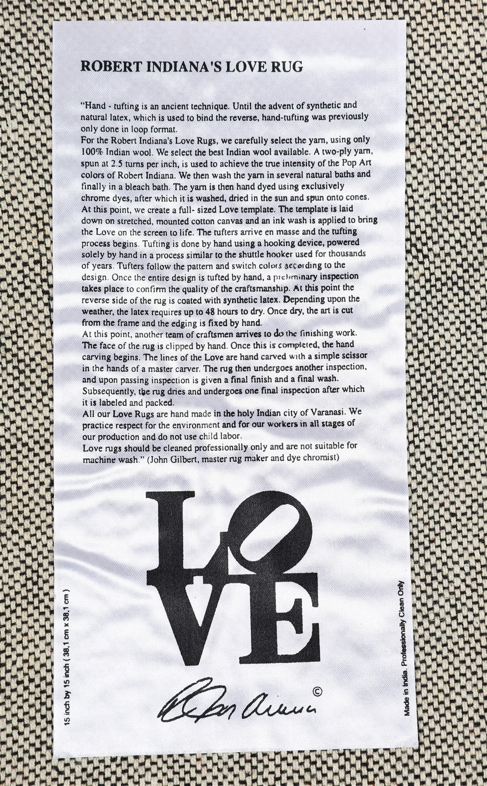 INDIANA ROBERT (n. 1928) Love rug. 2005. Tappeto. Cm 39,00 x 39,00. Al retro...