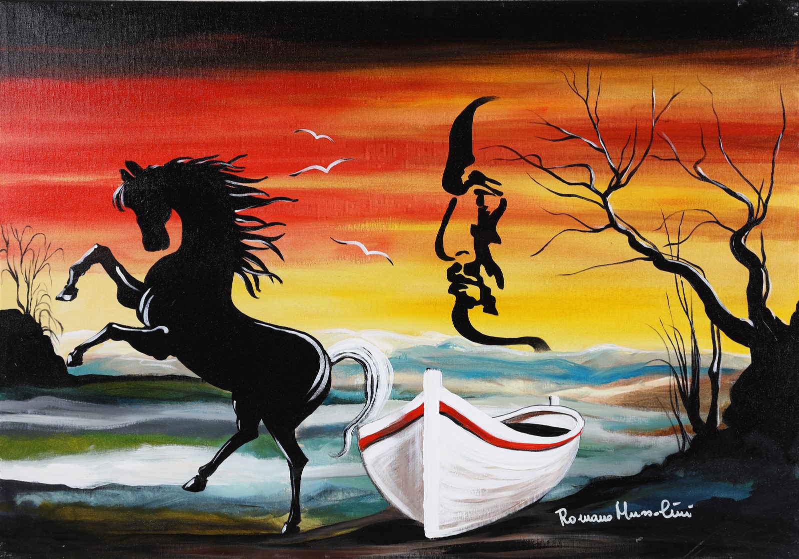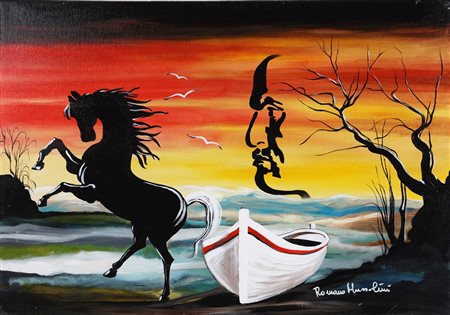 MUSSOLINI ROMANO (1927 - 2008) Senza titolo. Olio su tela. Cm 100,00 x 70,00. Firma in basso a destra e al retro.