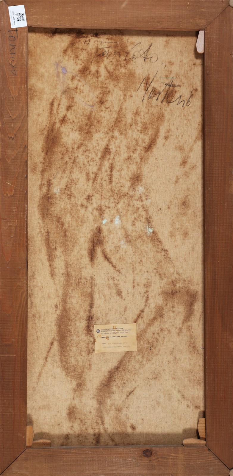 NASTASIO ALESSANDRO (n. 1934) Senza titolo. Tecnica mista su tela. Cm 59,00 x 120,00. Al retro titolo, firma e cartiglio descrittivo.