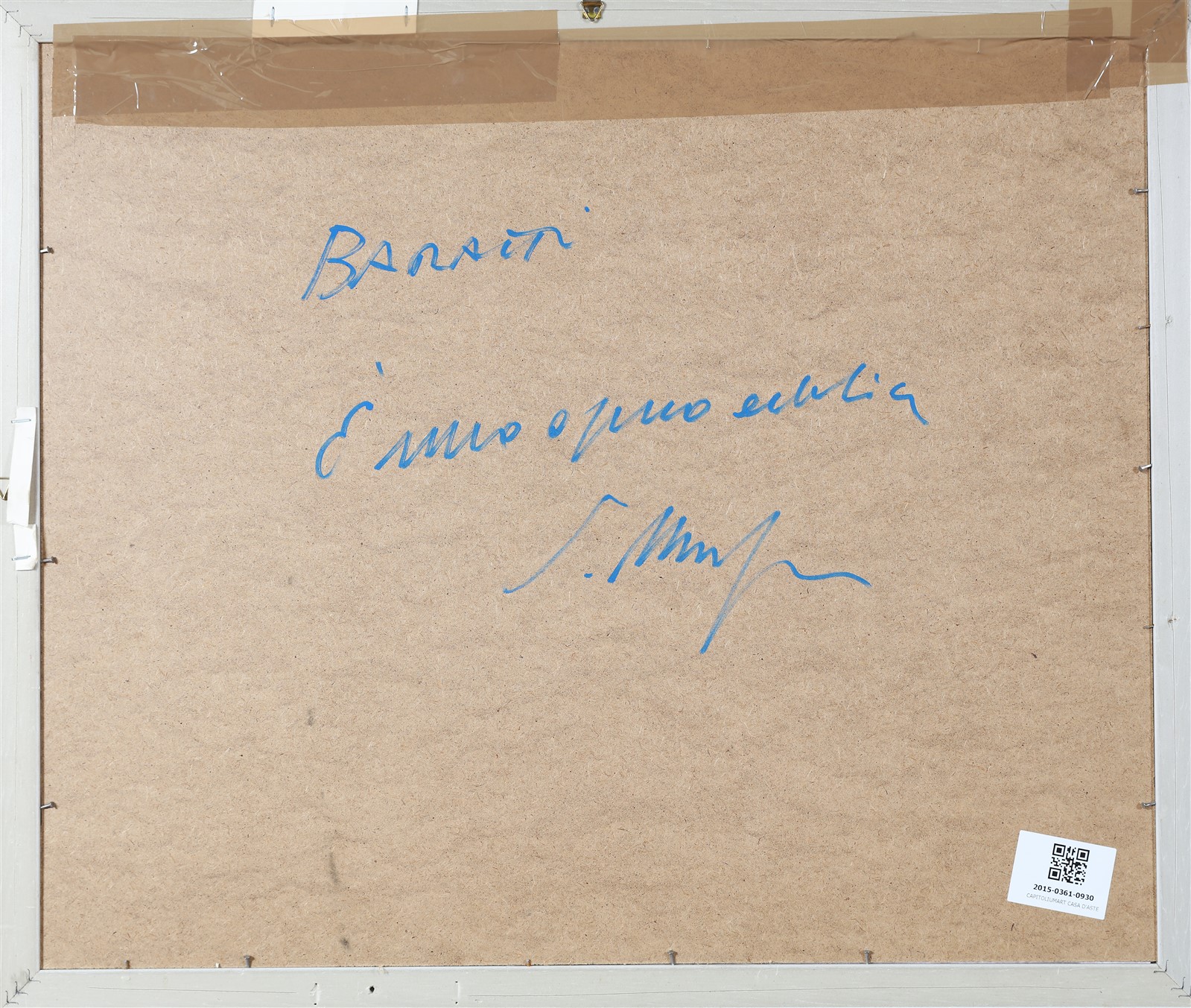 MAGAZZINI SALVATORE (n. 1955) Baratti. Olio su tavola. Cm 50,00 x 40,00. Firma in basso a destra. Al retro titolo, e firma per autentica. Autentica dell'artista su fotografa. Cornice presente