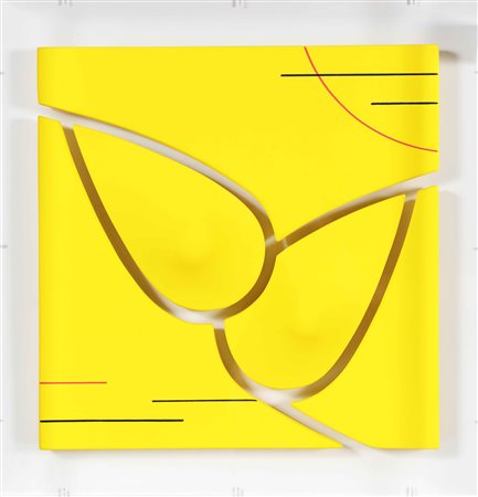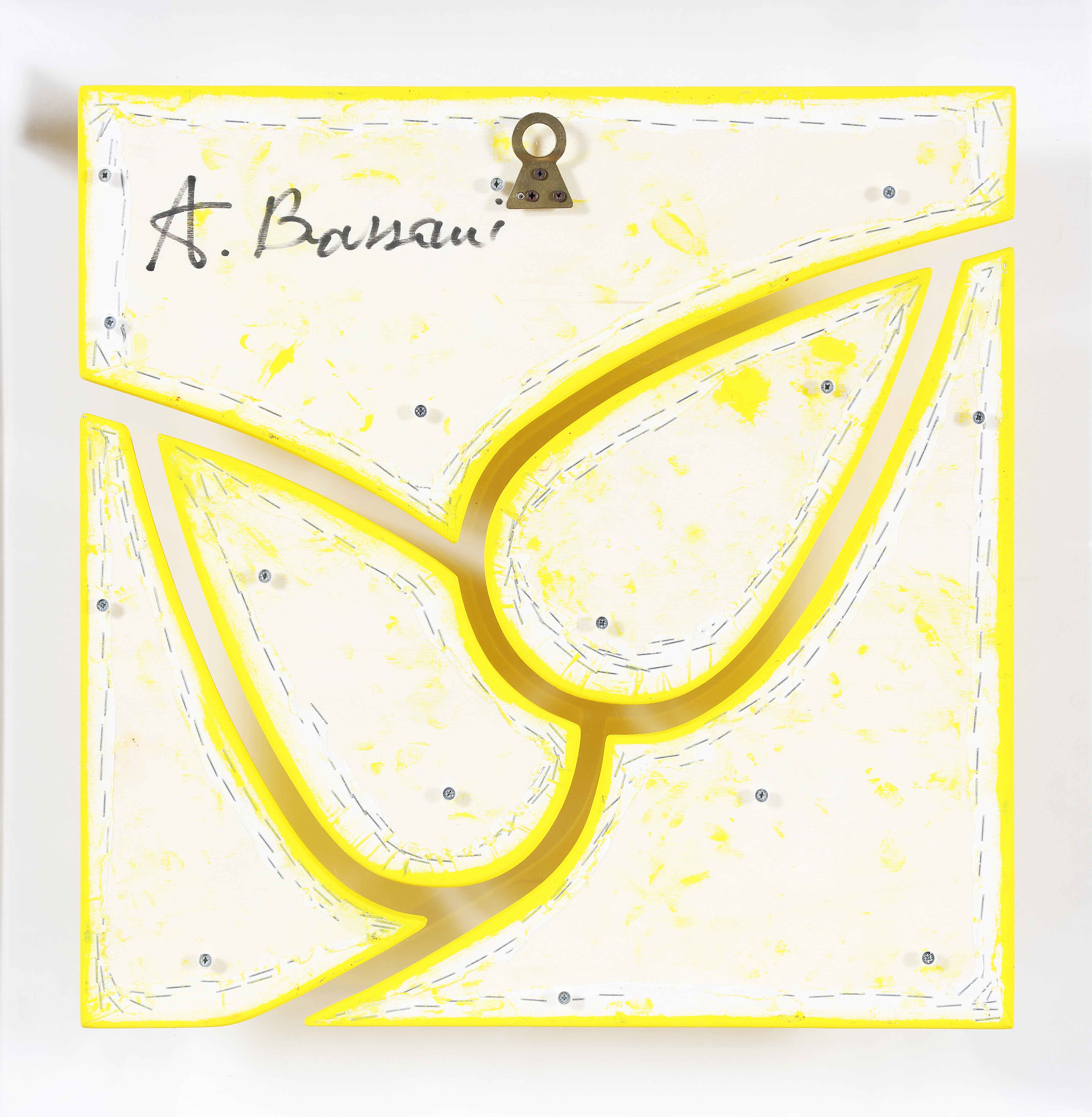 BASSANI ANDREA (n. 1954) Senza titolo. Acrilico su tela estroflessa. Cm 50,00 x 50,00. Opera contenuta in una teca di plexiglass. Firmata al retro. Autentica dell'artista su fotografia.