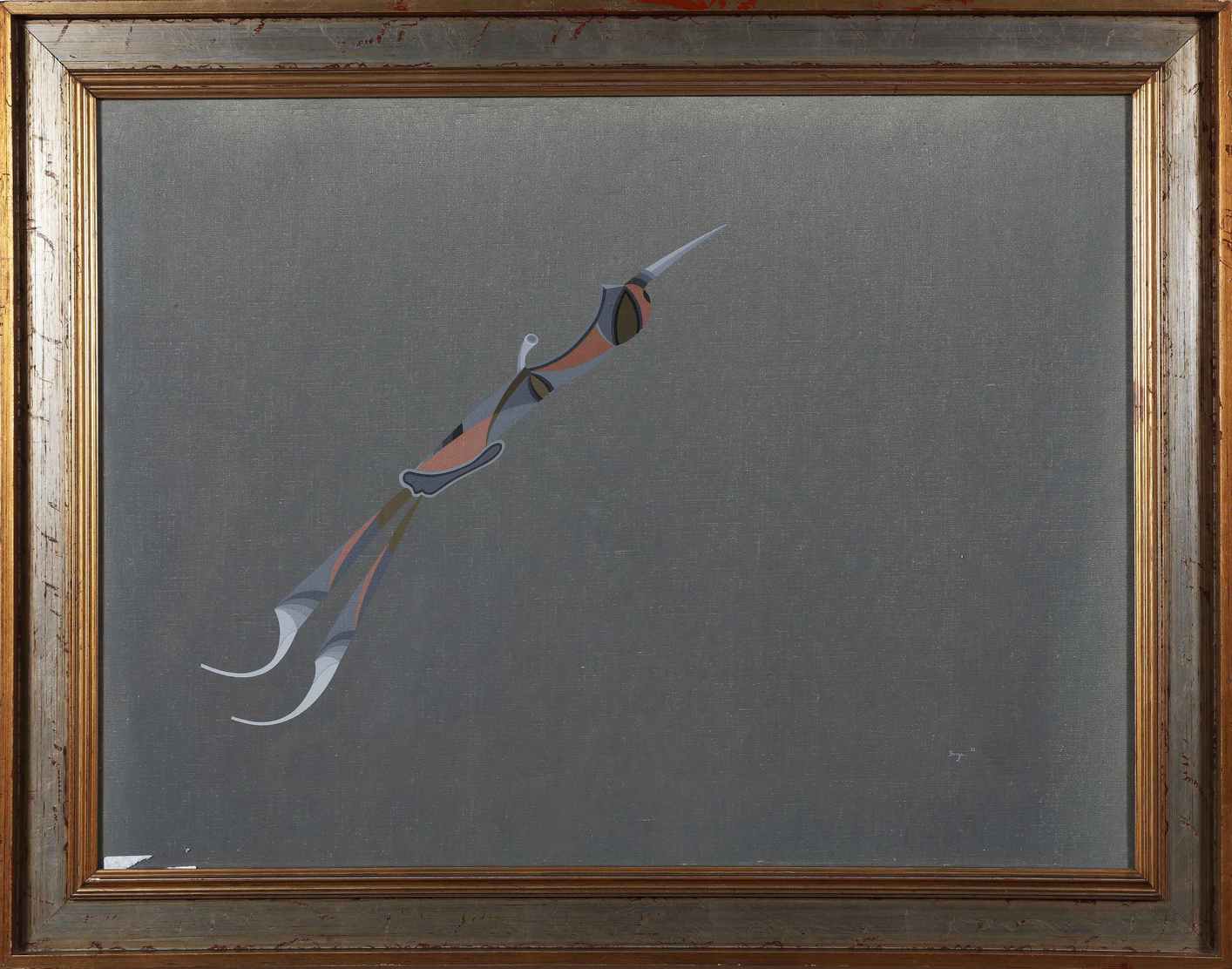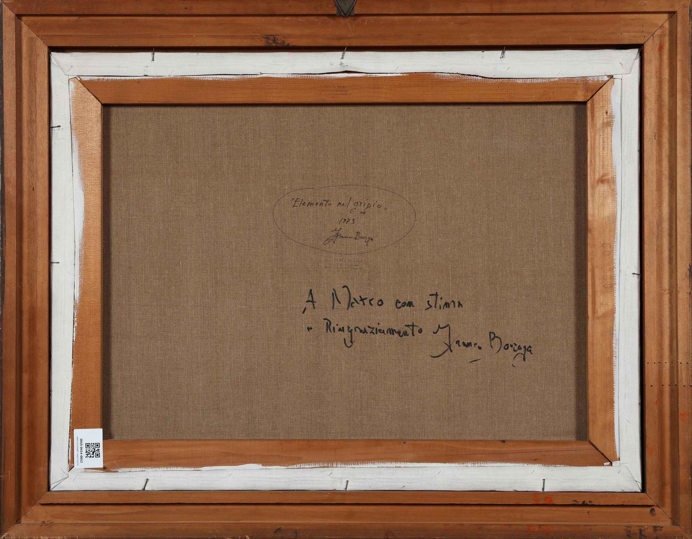 BORGA FRANCO (n. 1937) Elemento nel grigio. 1973. Olio su tela . Cm 60,00 x 80,00. Al retro titolo, firma e anno. Autentica dell'artista su fotografia. Cornice presente