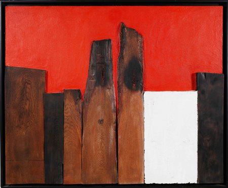 DE LUTTI PIERLUIGI (n. 1959) Doppia ferita. Tecnica mista su legno. Cm 120,00 x 100,00. Autentica dell'Artista su fotografia riportante il relativo numero d'inventario.