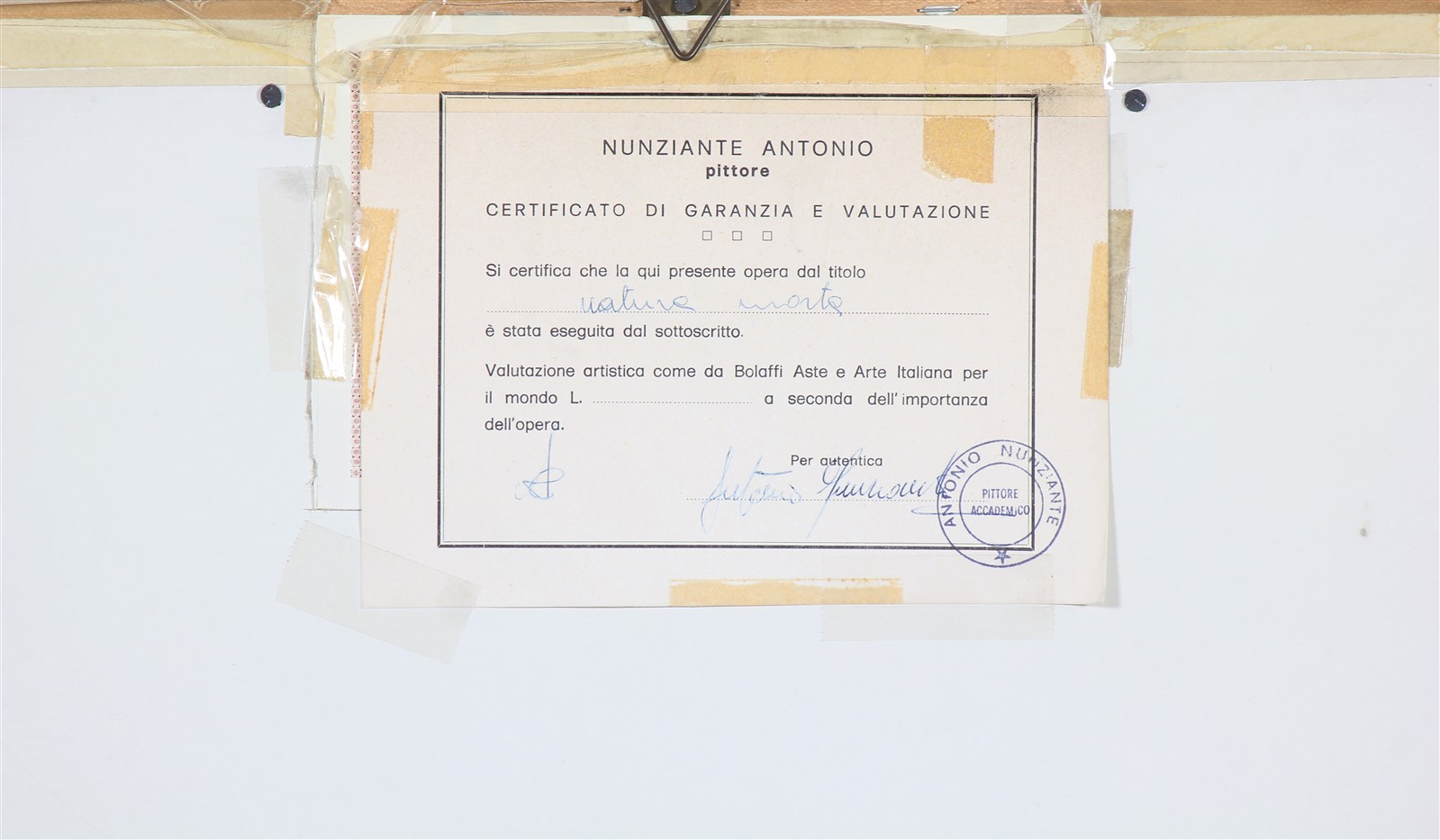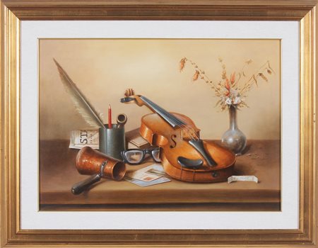 NUNZIANTE ANTONIO (n. 1956) Natura Morta. 1987. Olio su tela. Cm 70,00 x 50,00. Firma in basso a destra e al retro. Autentica su fotografia firmata dall'artista a cura dello Studio D'Arte Nunziante, Giaveno (TO) riportante il relativo numero d'inventario. Cornice presente