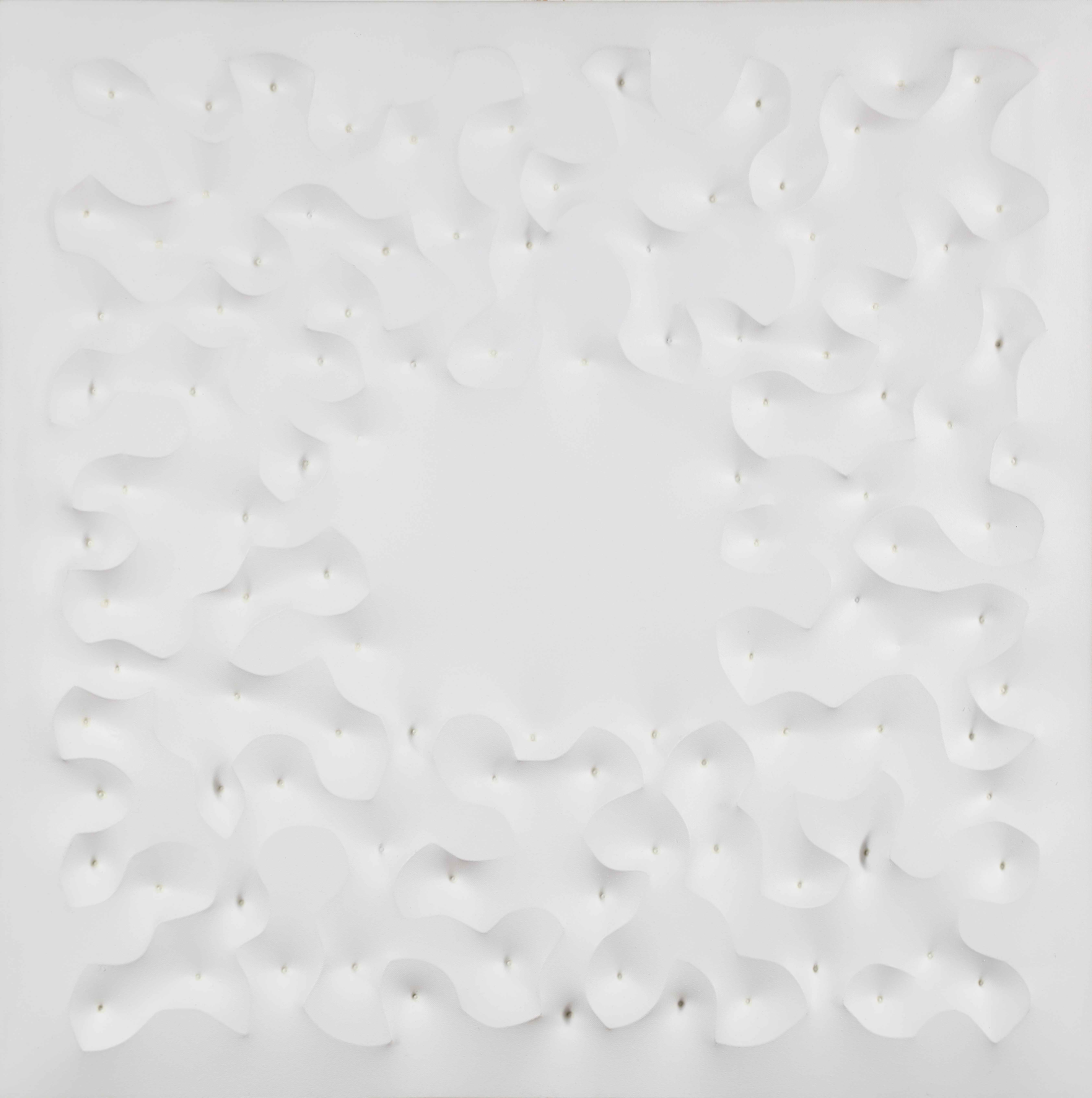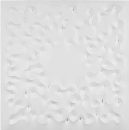 AMADIO GIUSEPPE (n. 1944) Agena. Acrilico su tela estroflessa. Cm 70,00 x 70,00. Al retro firma e titolo. Autentica dell'artista su fotografia.