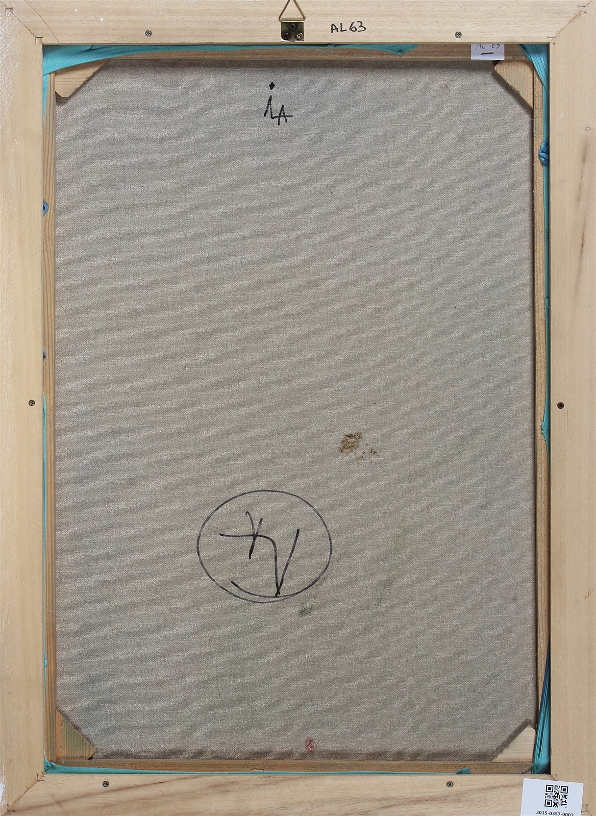 ALA (ANTONELLA ISANTI) (n. 1966) Fluire del Ki. 2006. Tecnica mista su tela. Cm 50,00 x 70,00. Opera archiviata presso l'Archivio Antonella Isanti come da documentazione fotografica allegata all'opera riportante il relativo numero d'inventario. Opera contenuta in una teca di plexiglass.