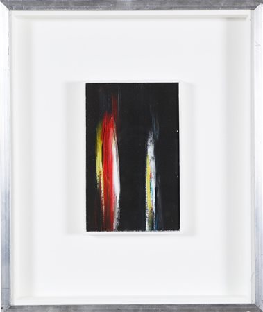 FINZI ENNIO (n. 1931) Il verso del colore. 2012. Olio su tela applicata su tavola. Cm 10,00 x 15,00. Al retro titolo, firma e anno. Autentica dell'artista su fotografia. Cornice presente
