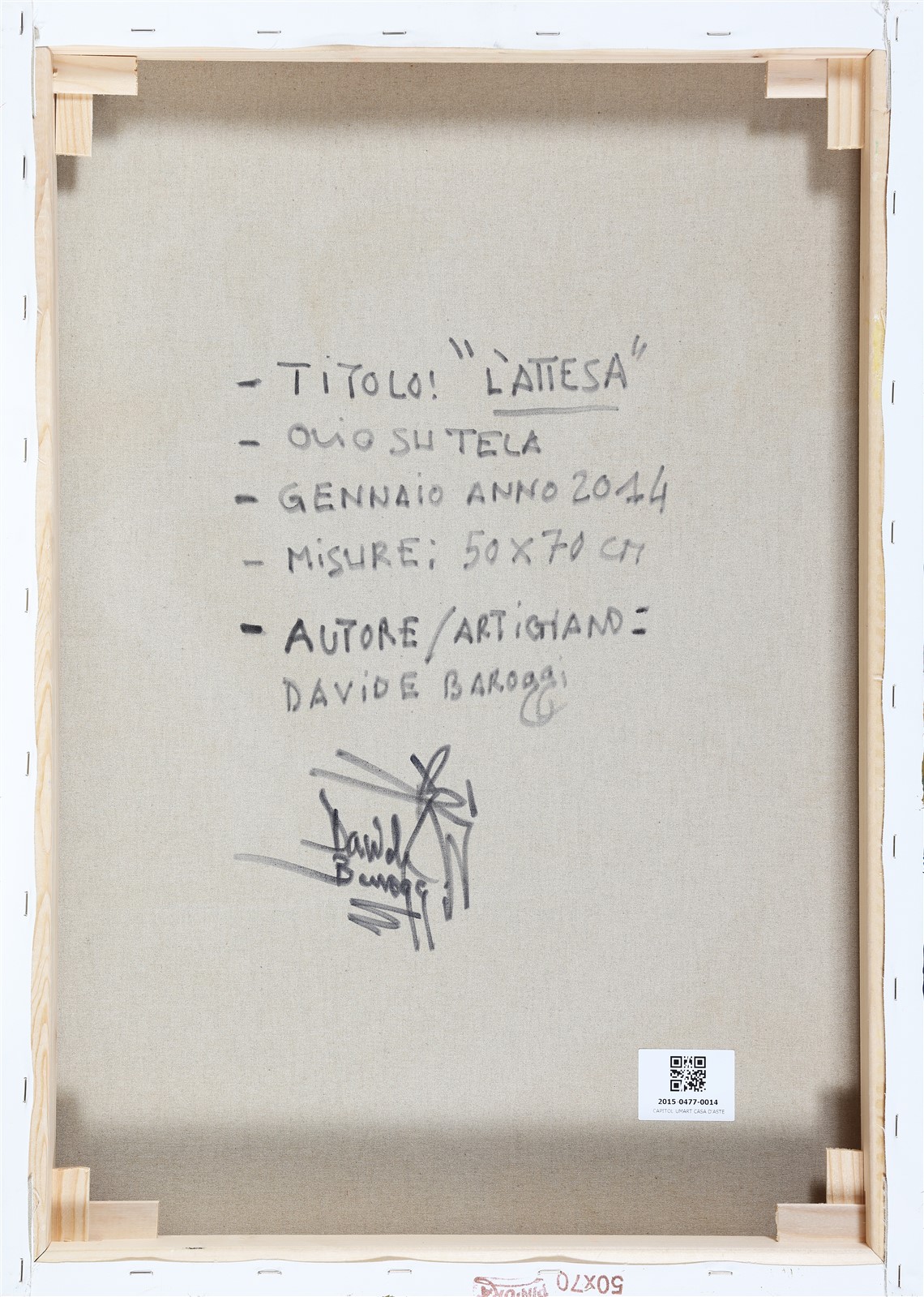 BAROGGI DAVIDE (n. 1974) L'attesa. 2014. Olio su tela. Cm 70,00 x 50,00. Al retro titolo, firma e anno. Autentica dell'artista su fotografia.