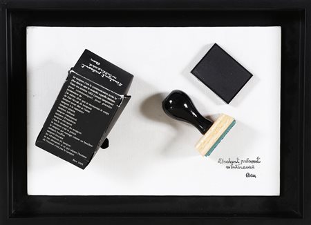 VAUTIER BEN (n. 1935) L'istant present m'interesse. 1995. Tecnica mista su tela. Cm 21,00 x 29,00. Opera editata dalla Galleria D'Arte Cathrine Issert, San Paul de Vance nel 1995. Presente certificato a cura della Galleria Nice Art Gallery. Timbro in basso a destra riportante titolo e firma.